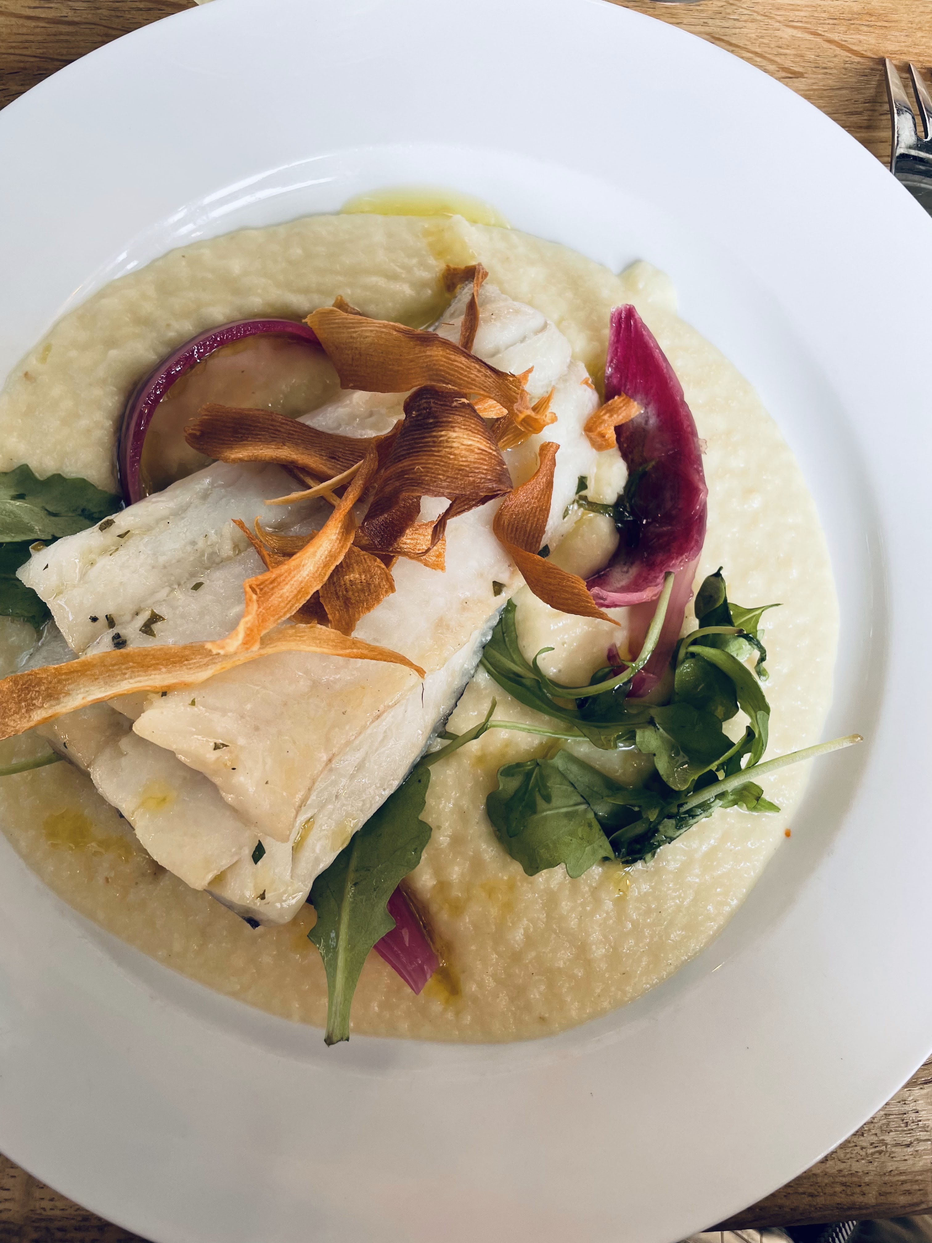 serveuse agréable mais repas pas terrible . asperges en entrée trop filandreuse, poisson au lait de coco aucun goût et l'accompagnement trop grillé pour les minuscules patates.