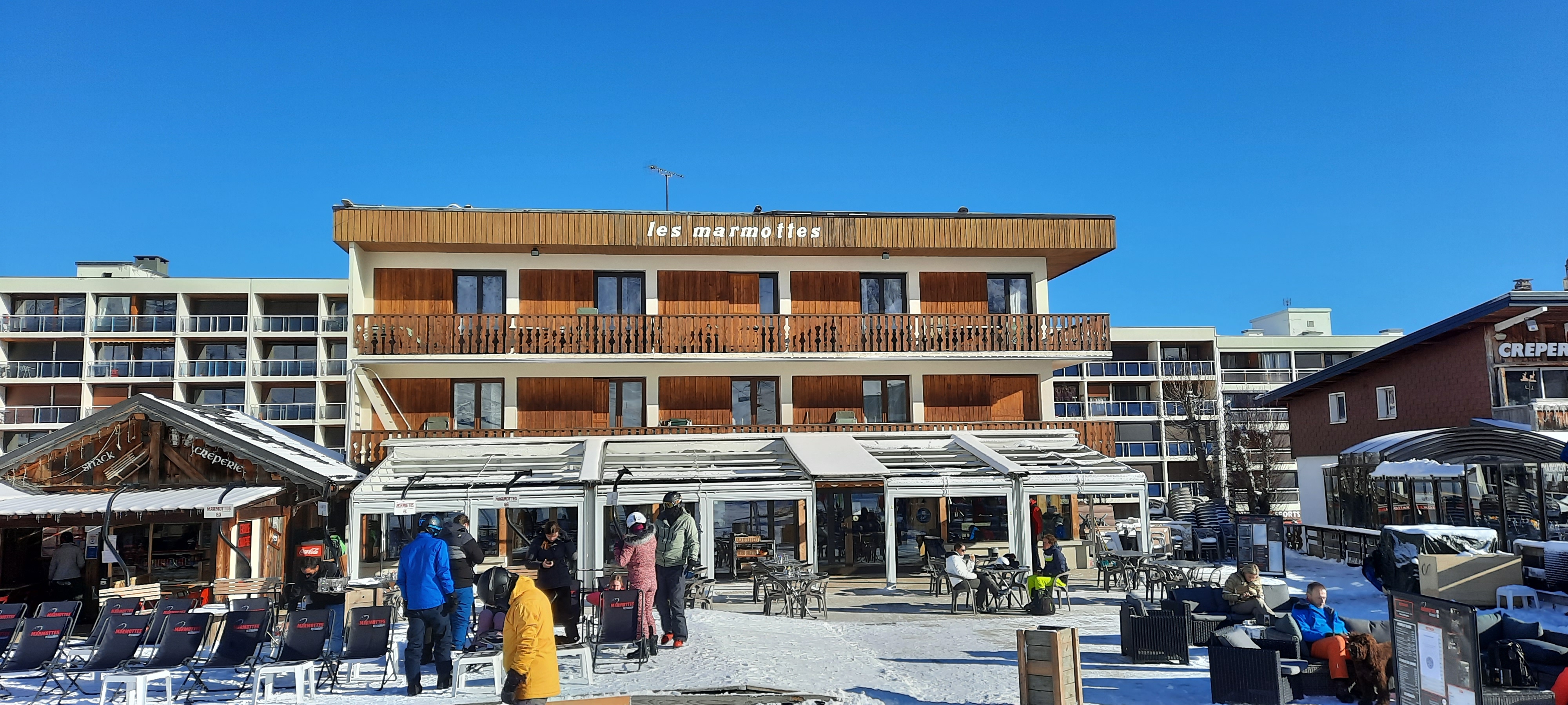 Résidence idéalement située à quelques mètres des pistes. La terrasse du resto est un bonheur pour prendre un vin chaud en fin de journée. Les serveurs sont en plus vraiment sympa et décontractés.