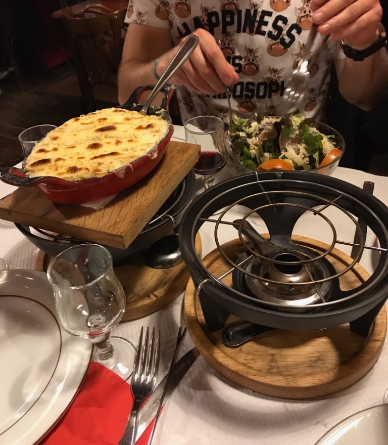 Un petit resto où l'on est vite dans l'ambiance montagne, où les plats sont très copieux, que ce soit les entrées où les gratins. Attention cependant si vous voulez une raclette, il y a un seul appareil, donc il faut se frayer un passage entre les tables pour y accéder et faire la queue, ce qui nous a découragées alors que l'on venait pour une soirée raclette entre copines, notre table étant à l'opposé de l'appareil et le resto plein. Service sympathique et efficace.