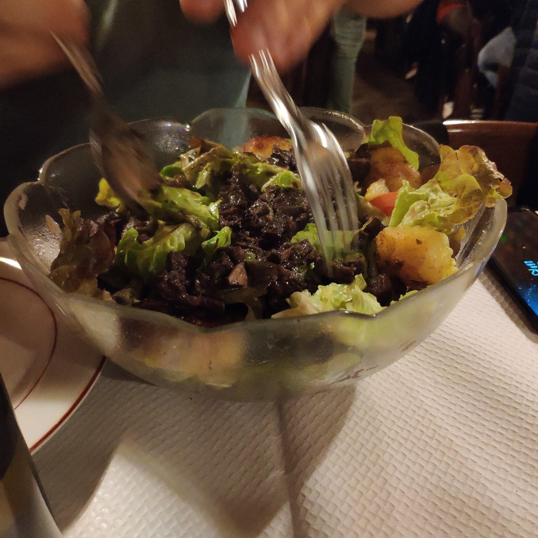 Alors comment dire: INADMISSIBLE ! À 21h20, on refuse de prendre notre commande de dessert car il est trop tard, la prochaine table va arriver. À aucun moment on nous a prévenu que nous avions un temps limité pour manger. Réservation en ligne, trois mail de retour pour confirmer cette réservation, mais rien de spécifié sur l'horaire. Une petite assiette de charcuterie pour 5 personnes (la même que pour 2). Plus de jambon blanc: c'est vrai que ça se fait rare le jambon blanc! HONTEUX