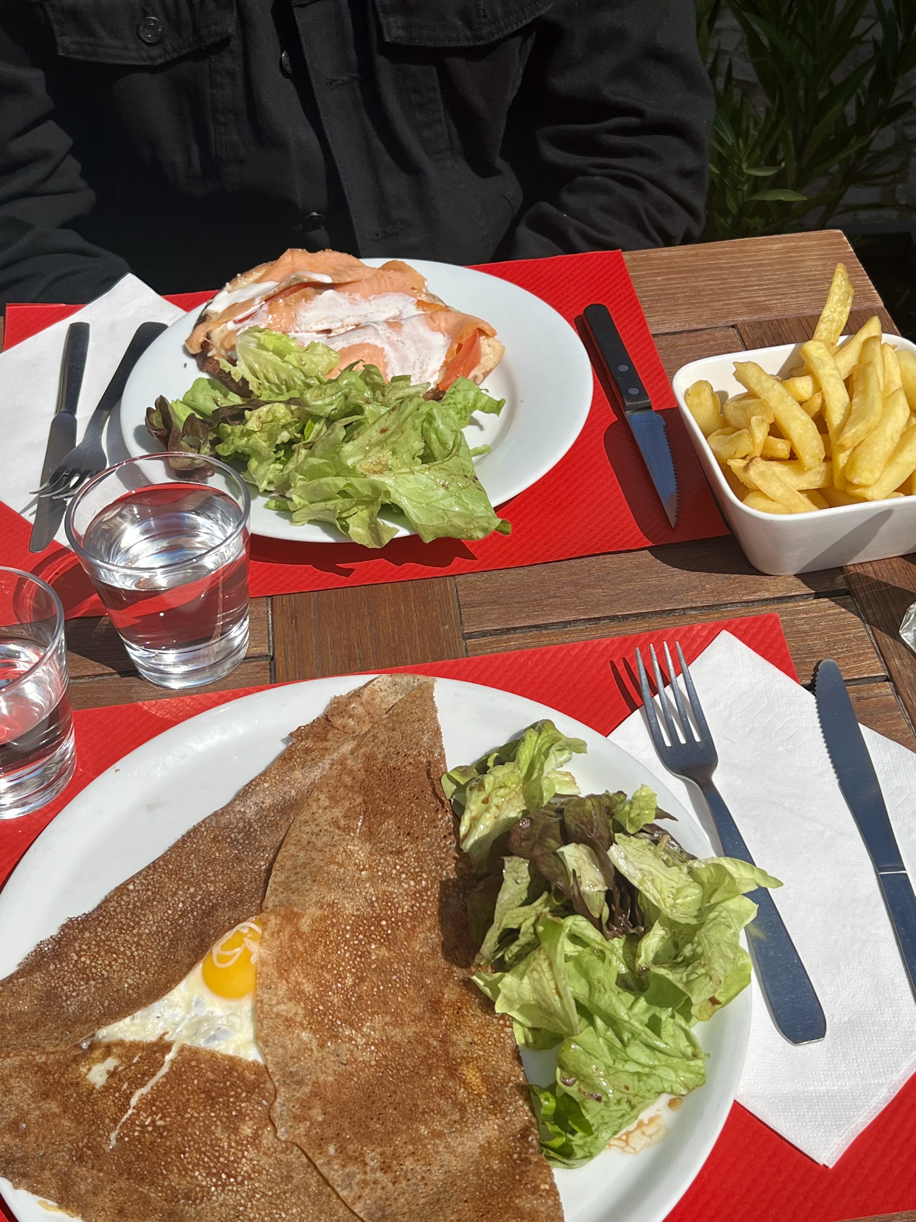 Les plats étaient bons et généreux. J'ai pris une galette clakos et ma femme galette norvégienne, le rapport qualité prix était bon même si ce n'était pas les meilleurs que j'ai pu goûté. Cependant l'accueil et le service laissaient vraiment à désirer. Ma femme est voilée et nous étions à peine sur le seuil d'entrée que le regard de la personne derrière le bar nous laissait comprendre que nous n'étions pas les bienvenus. Le ton condescendant sur lequel celle-ci à répondu lorsque nous avons demandé une table pour deux l'a confirmé. Une fois installés, 15-20 mins se sont écoulées avant qu'un serveur ne vienne nous apporter une carte ( le restaurant était loin d'être plein). Le service a été fait dans un temps raisonnable. Une fois les plats finis une nouvelle fois nous avons attendu et attendu avant qu'on ne vienne nous débarrasser malgré les tentatives de capter le regard des serveurs. Pour le dessert, nous avons demandé deux fois la carte, pareil, 15mins juste pour avoir la carte. J'ai fini par me lever pour la chercher moi-même. Le serveur est ensuite revenu rapidement prendre notre commande, un banane Split qui était bon.