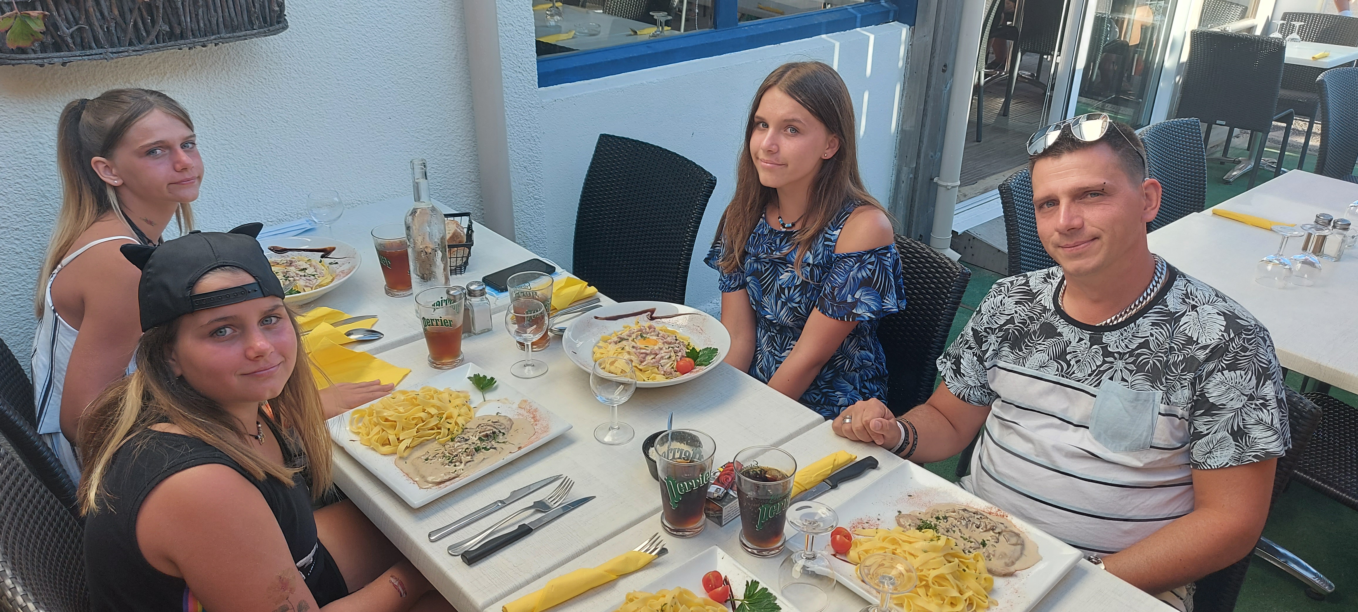 A l'occasion d'un dîner en famille nous avons apprécié ce restaurant des employés souriant malgré la Chaleur jammais en manque d'eau ni de pain un service agréable un esprit chaleureux des plat et entrée copieux(se) j'y retournerais au prochain passage en vacance je recommande les gambas flambée au whisky avec les tagliatelles