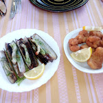 Brochettes de noix de saint jacques à la crème au chorizo et assiette du marronnier : noix de saint jacques, dos de cabillaud grillé à la moutarde et gambas.... délicieux et raffinés