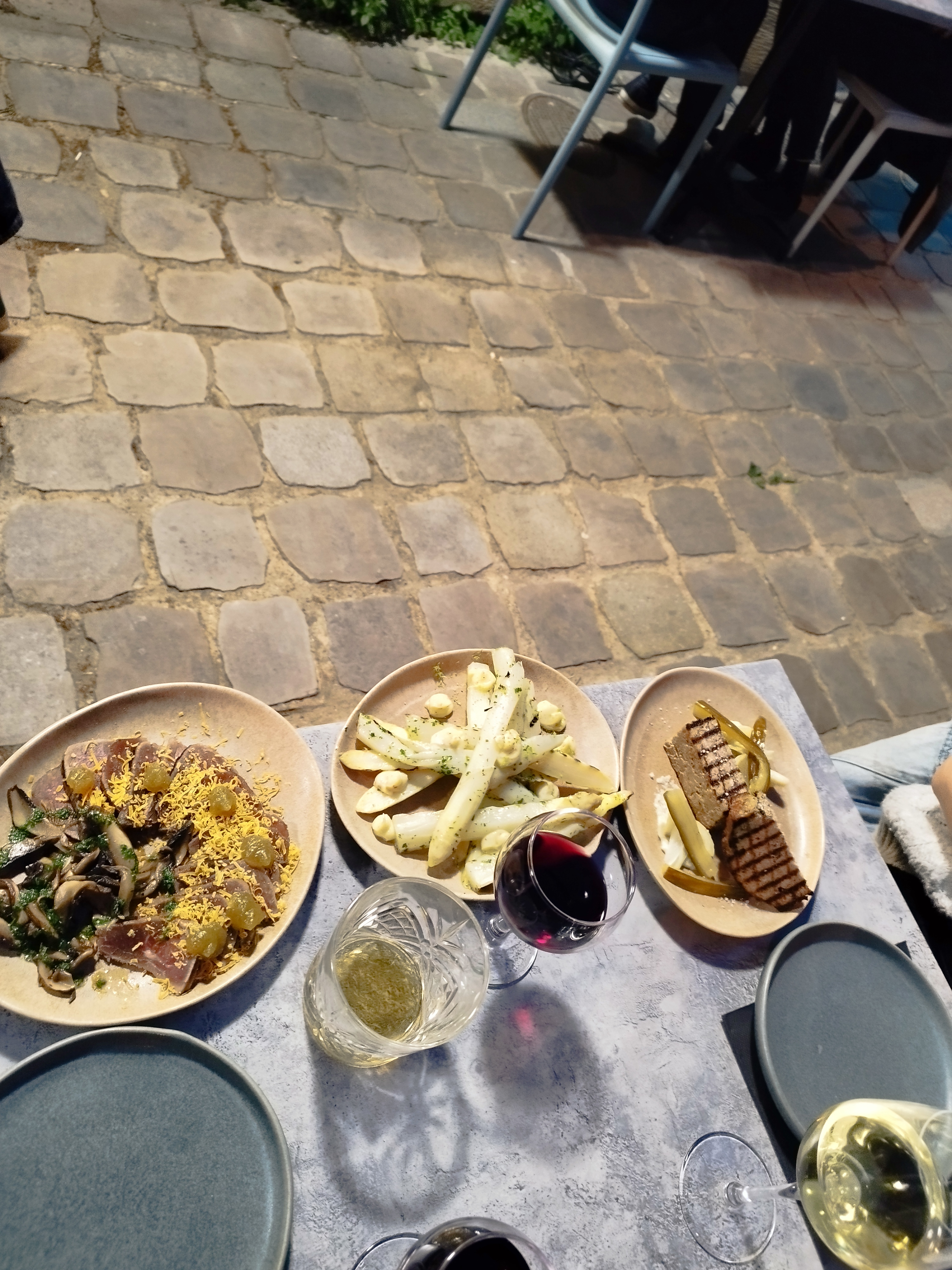 Super bien j’étais avec ma copine, la nourriture est tellement ouf !!! Les entrées les plats et les desserts sont maîtrisés à la perfection. Le cadre est incroyable sur cette petite place. Avec les cocktails avec Jeff vous êtes sûr de passer une soirée posée chill. Je recommande