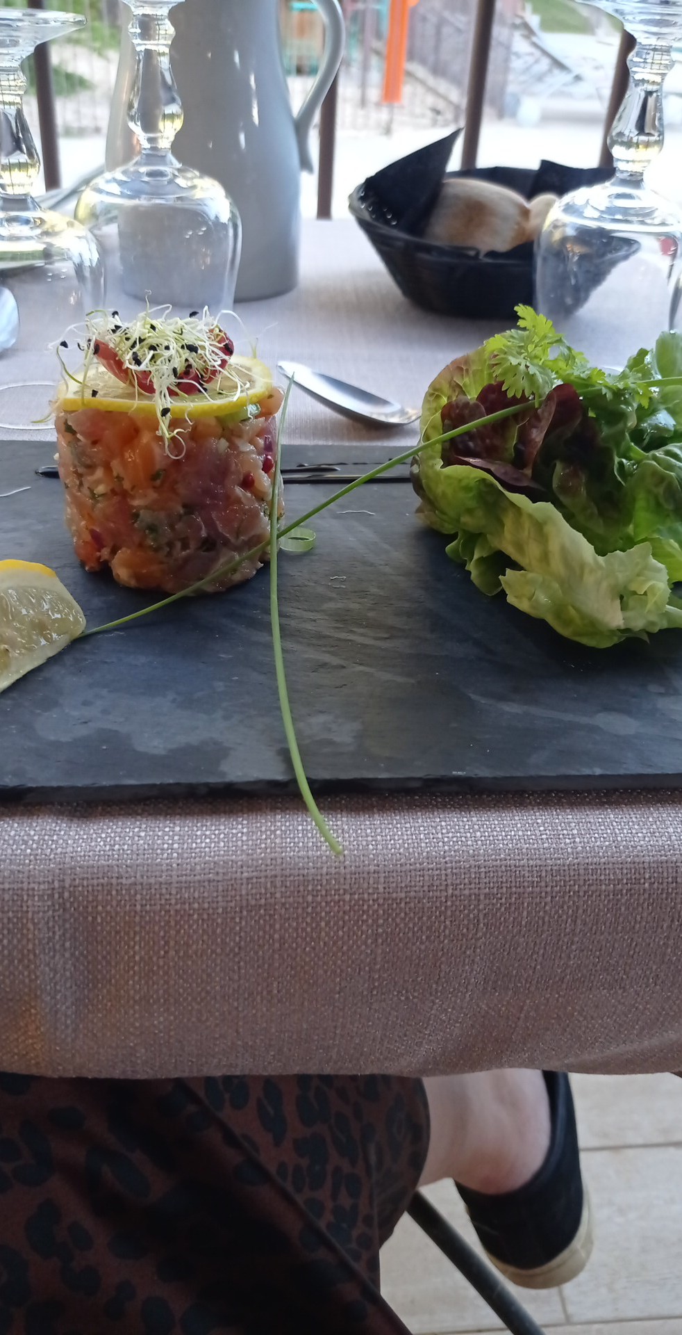 Découverte de l’endroit pour un baptême : personnel tendu et peu avenant car sommes arrivés 1/4 d’heure en retard, nous avions là sensation qu’ils n’attendaient qu’une chose c’est que l’on se presse de prendre l’apéritif pour vite passer à table. A 17h pile, le personnel debarrassait les tables en repliant les nappes devant la famille médusée et encore assise! Bref même si le cadre est joli une formation politesse et sourire ne serait pas du luxe! Et je passe l’engueulade entre le plongeur et la dame (propriétaire?) en plein milieu de la salle à l’intérieur devant tout le monde....