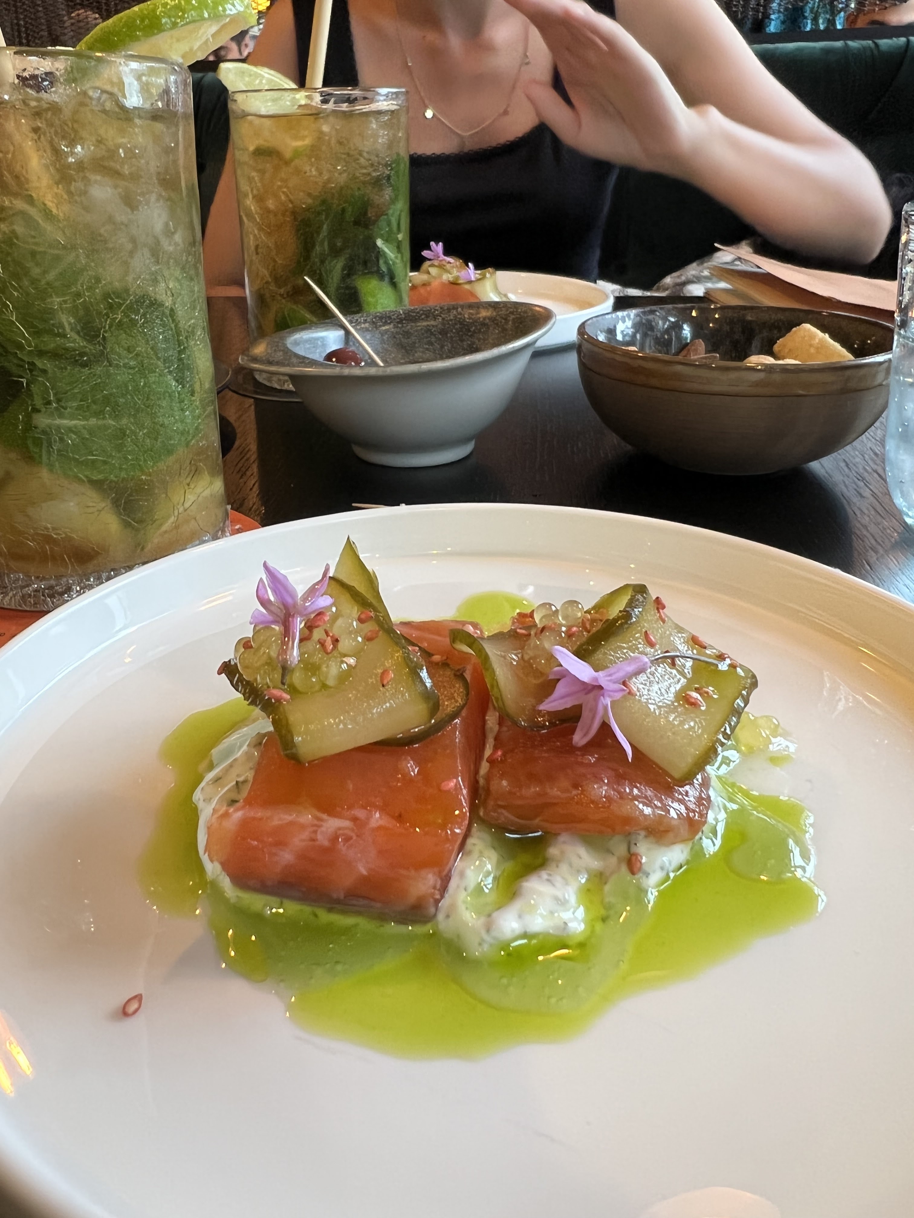 Cocktail très bon Décoration chaleureuse mais malheureusement malgré la beauté des plats... peu voir pas de saveur... Entrée oeuf mimosa nori oeuf de poisson (fade, l'oeuf sentais fort, et réellement entrée facile à faire chez soi rien d extraordinaire...) Plat croustillant de saumon (saumon cuit et enveloppé dans une feuille de brick) bon mais pas extraordinaire non plus... Bref ca ne vaux pas du tout le prix...