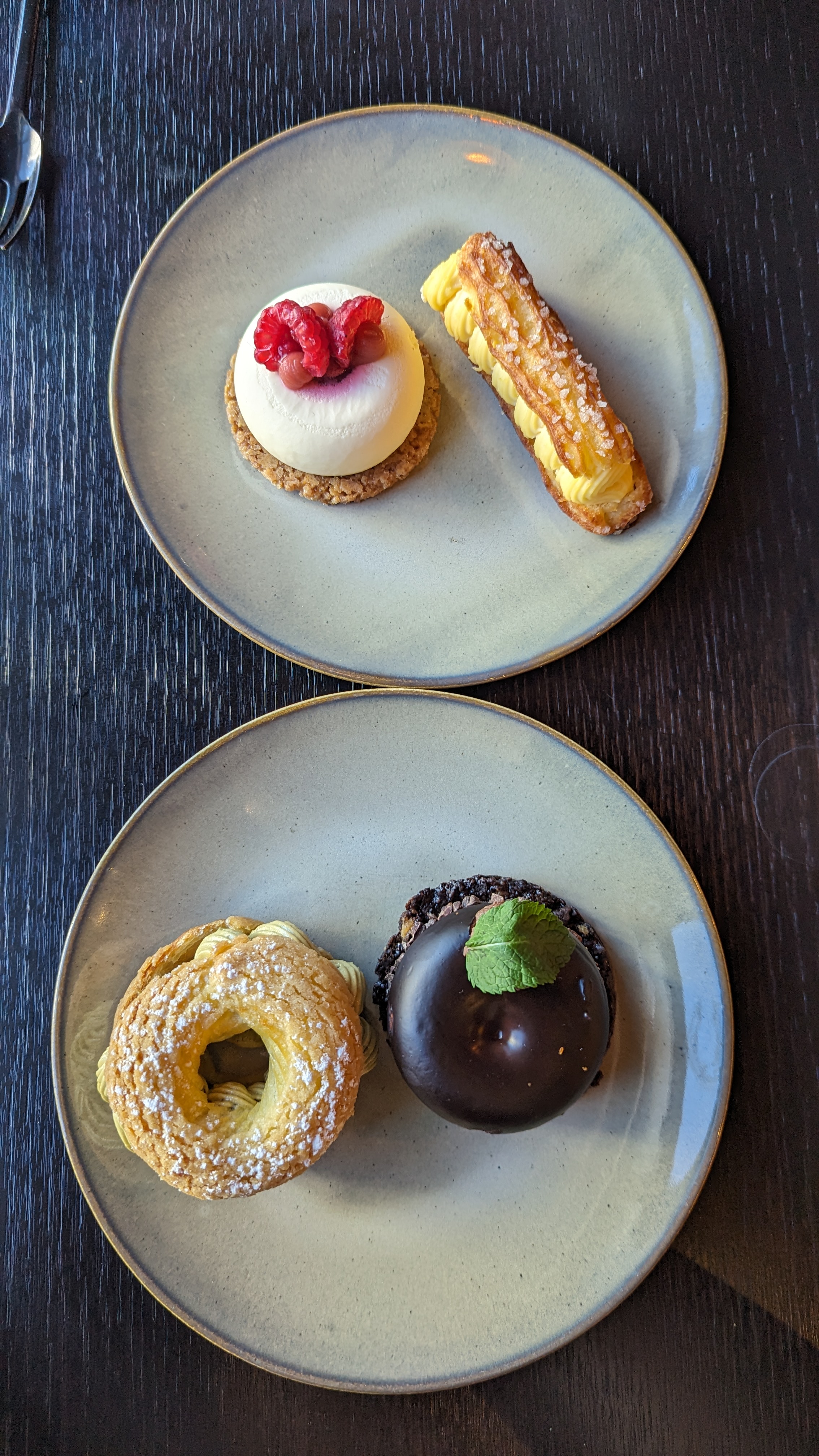Un cadre agréable et moderne un service de qualité très pro . Le menu du midi est d’un rapport qualité prix correcte . Les plats sont bien présentés mais le plat principal est arrivé à peine chaud ce qui est surprenant pour une brasserie de ce niveau . Gustativement c’est correcte sans plus , les plats sont plus beau que bons .mais pas de reproche sur les plats qui sont dans la norme d’une petite brasserie mais sans surprise . Un plus quand même pour les pâtisseries qui sont de très bonne qualité