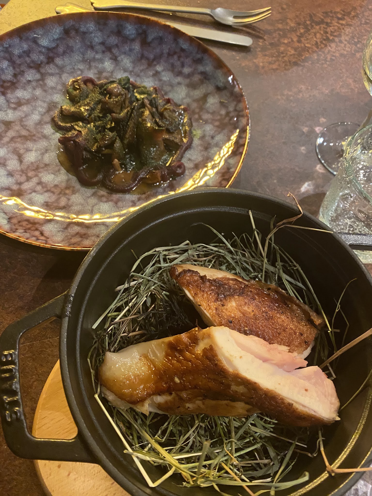Ce qui est proposé est juste hors de prix en comparaison avec ce que l'on a dans l'assiette. Mon plat supreme de volaille fumé au foin était à peine tiède. Le foin c'était du l'herbe à cochon dinde brûlée et les 5 gnocchis faisaient un peu pitié. Le fondant au chocolat était bon. C'est pour ça que je mets 2 étoiles. Je n'y reviendrai plus.