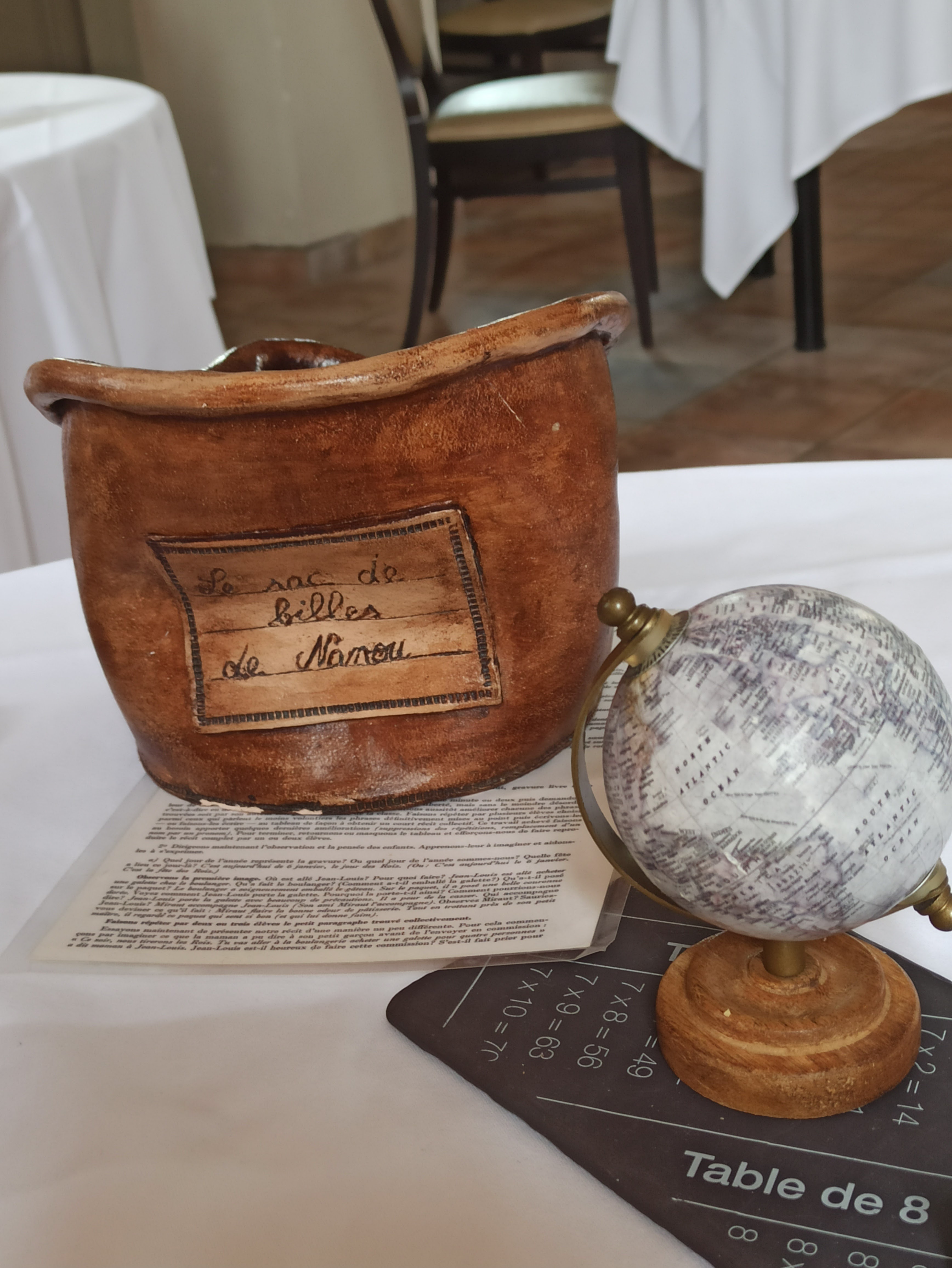 Joli cadre, qui nous rappelle notre enfance, puisque ce restaurant est installé dans une ancienne école élémentaire. Tout y est, anciennes tables, tableaux noirs, anciennes cartes de France, équerre, rapporteur, règles... Quant à la cuisine, même si en semaine le midi, il y a un menu unique, c'était très bon, bien présenté, et copieux. Les propriétaires sont des gens charmants. Merci encore pour ce moment gourmand!