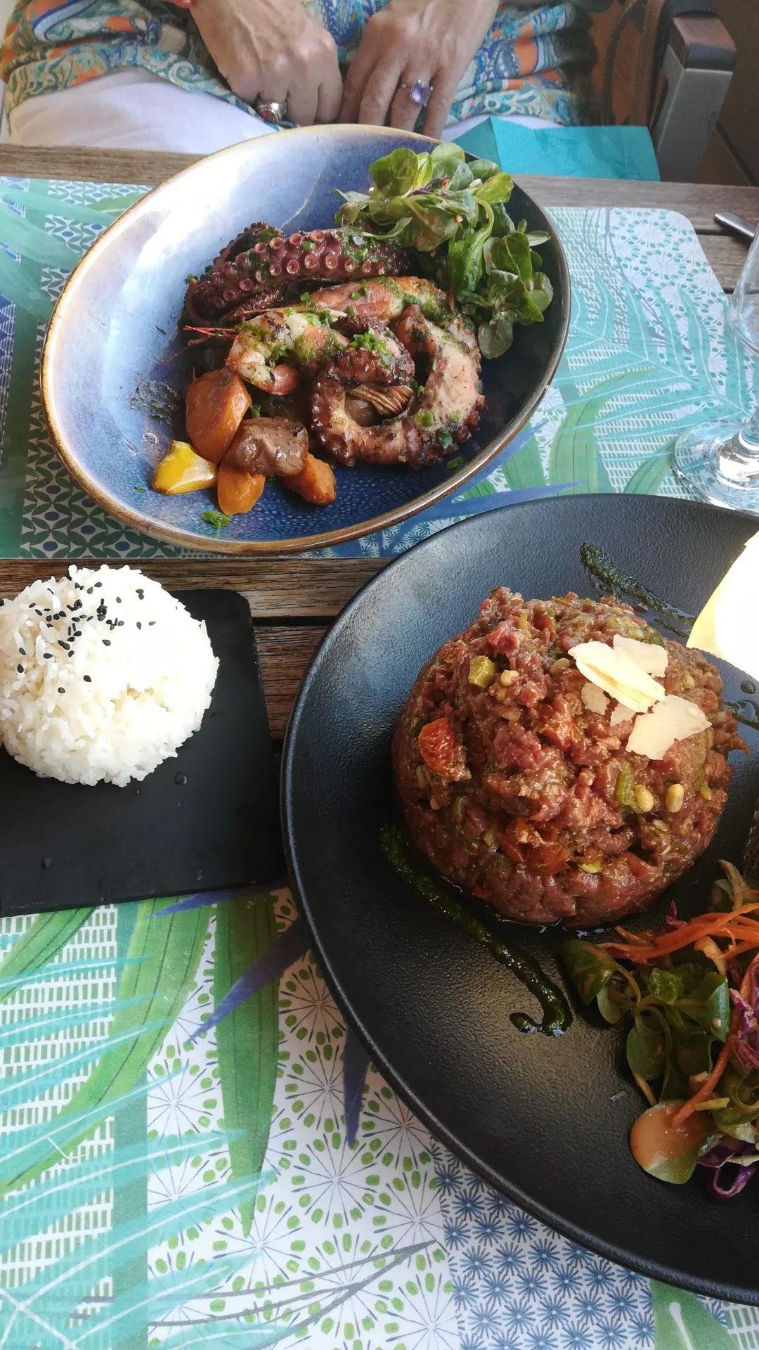 Un accueil plein de bonhomie, un décor agréable, une carte variée mais surtout des saveurs qui vous régalent les papilles.....le duo gambas/ poulpe est savoureux, le lieu coco vanille juste parfait et le tartare de thon... a tomber A recommander sans modération