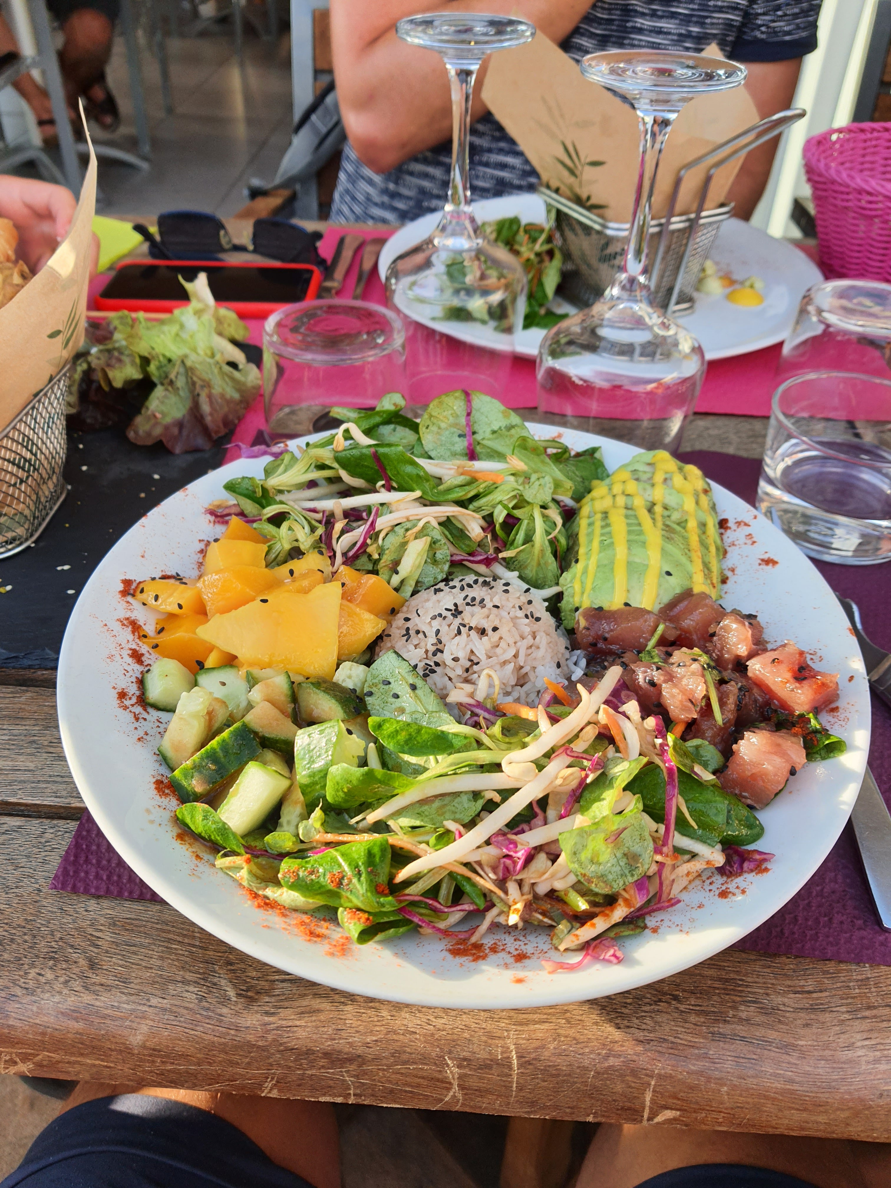 Expérience douteuse…Nous sommes venus suite aux bons avis et une apparence tentante…mais nous sommes sortis plus que mitigés : service long (ok c’est le prix du site qui est lui est captivant et magnifique avec le coucher de soleil), cuisine peu goûteuse (poke bowl baignant dans la sauce, portion de frites taillée pour les - de 6 ans)… bref pas emballés. Peut-être sommes nous tombés un mauvais jour ?? On ne saura pas …