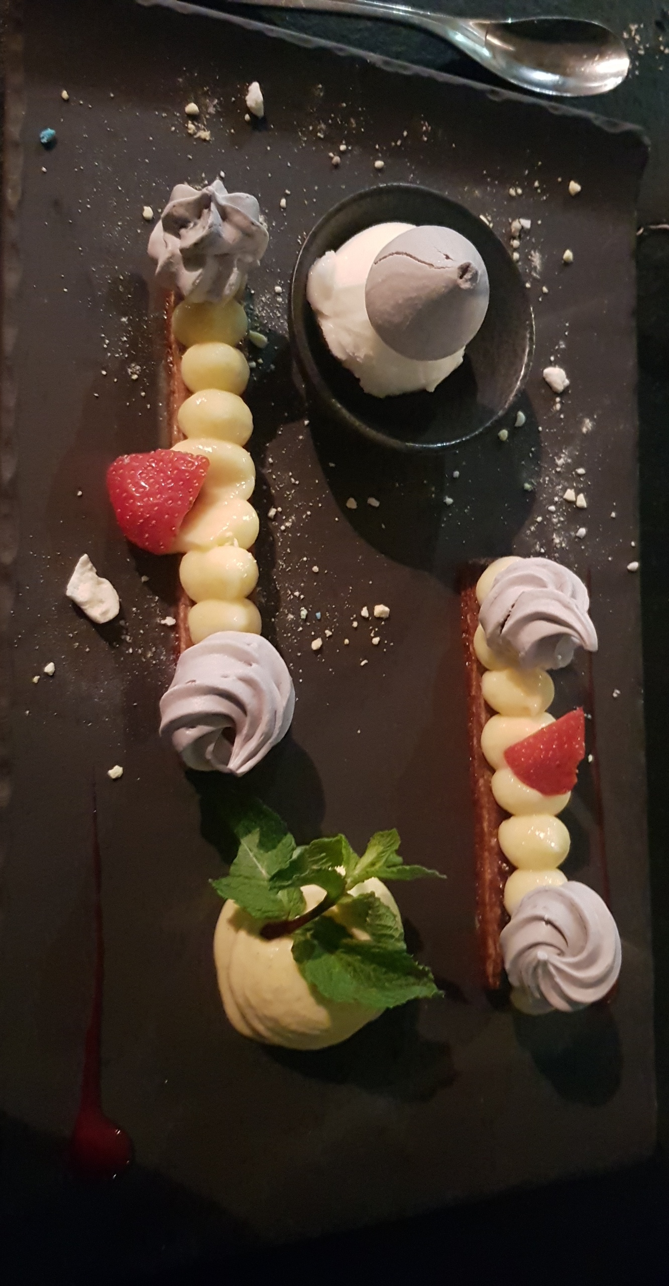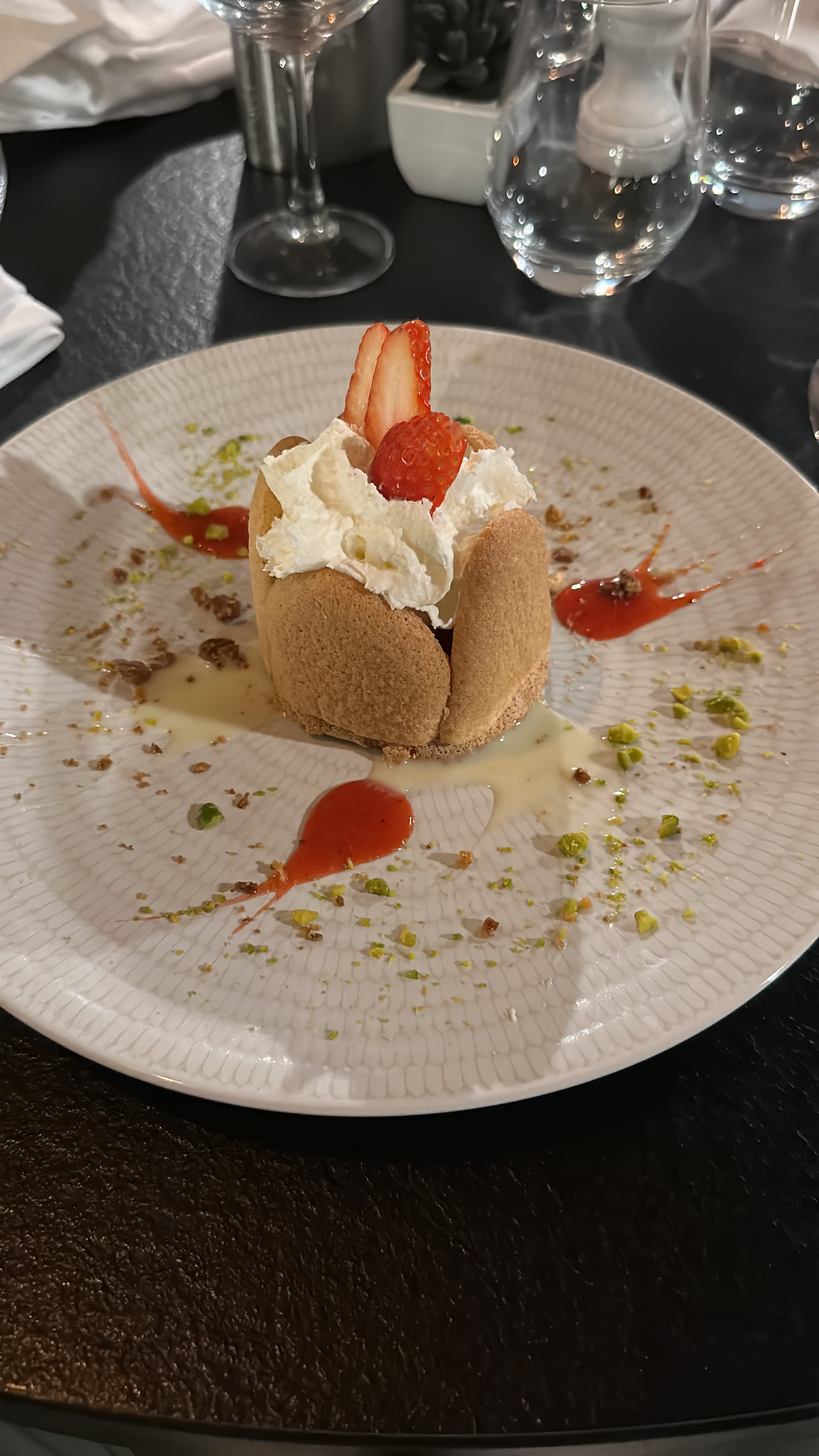 De l’entrée au dessert pas de fausses notes!! Service impeccable et souriant Table à recommander!! Nous avons passé une excellente soirée avec des mets délicieux