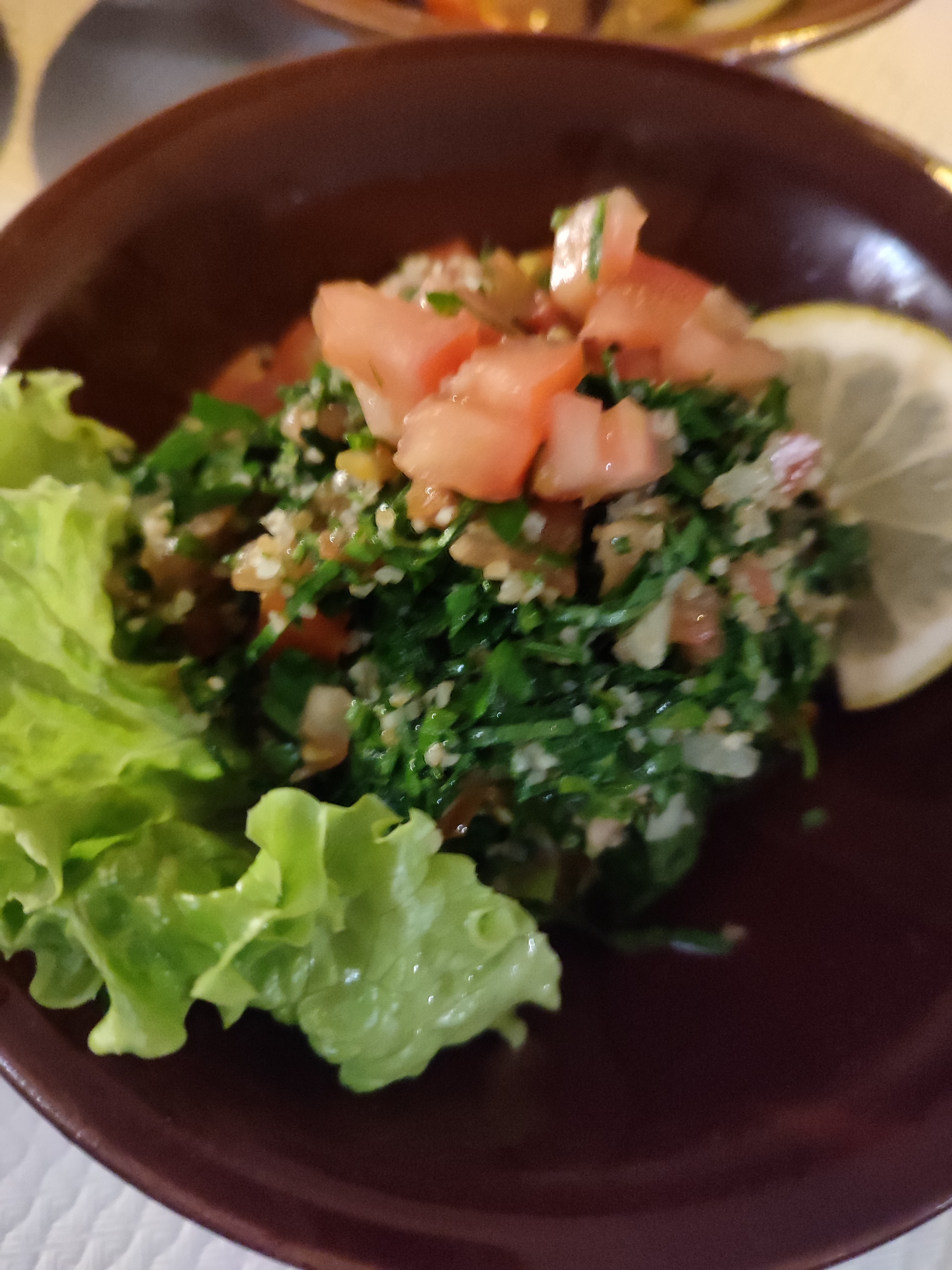 Un très bon moment avec des Mezzes délicieux et plus particulièrement le taboulet 👍👍👍🤩