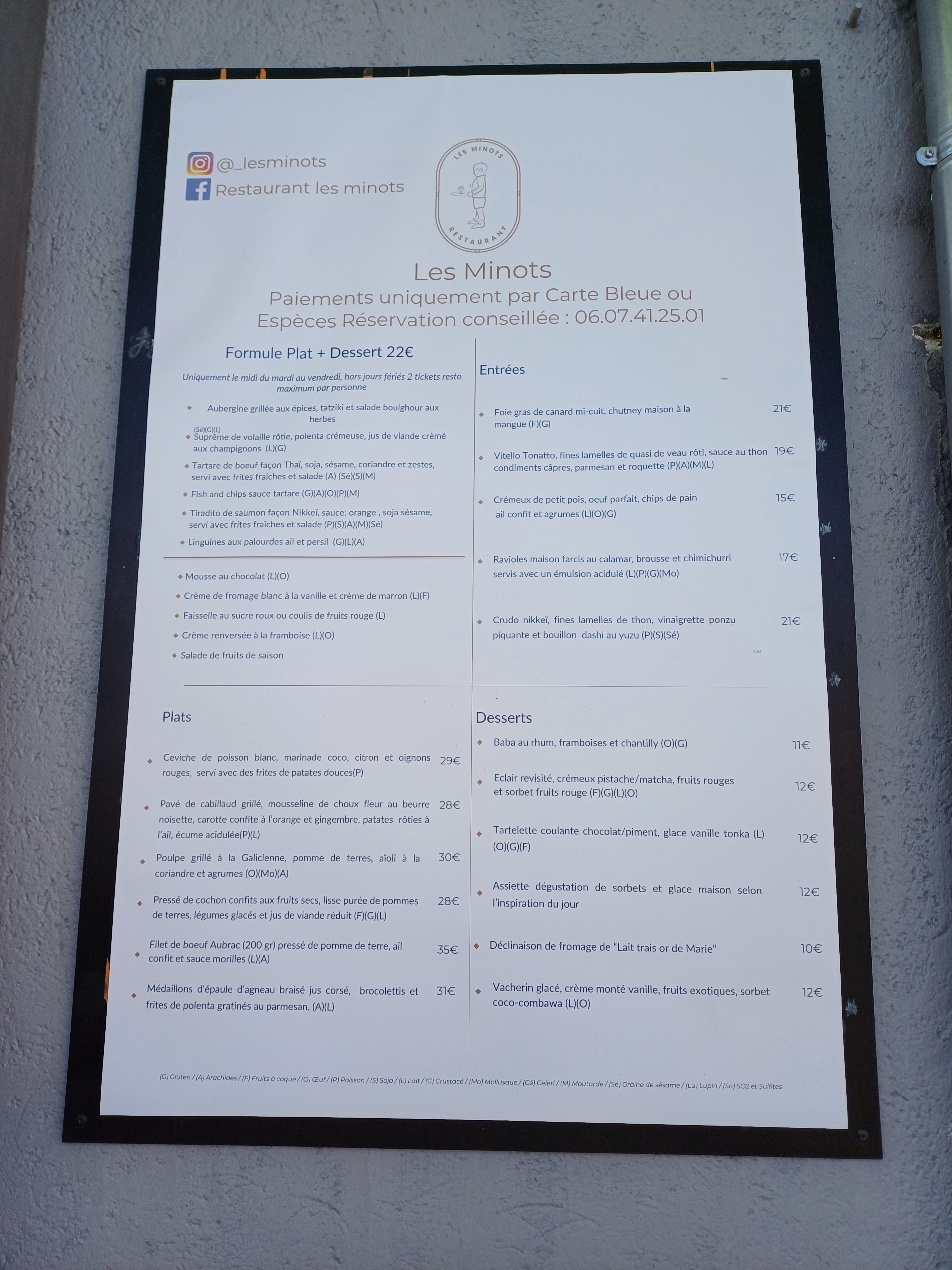 J’aime beaucoup le restaurant les minots petite carte avec des produits frais je recommande .