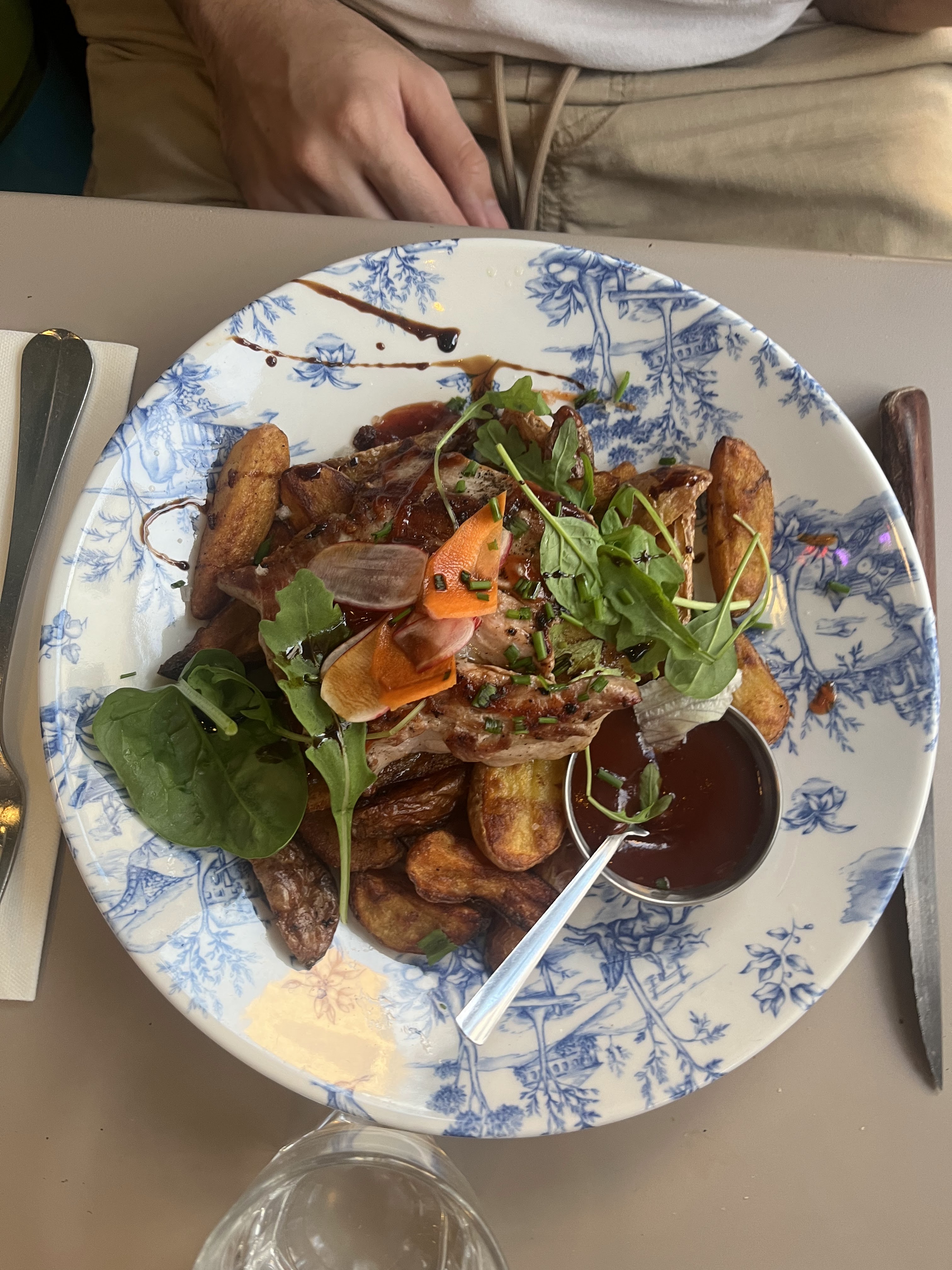 Terrasse très sympa, bons plats (tendance bistrot) et personnel adorable. Seul hic : un peu plus cher qu'un bistrot, avec des plats plutôt à 16-25€. Mais le lieu vaut le détour et j'y retournerai.