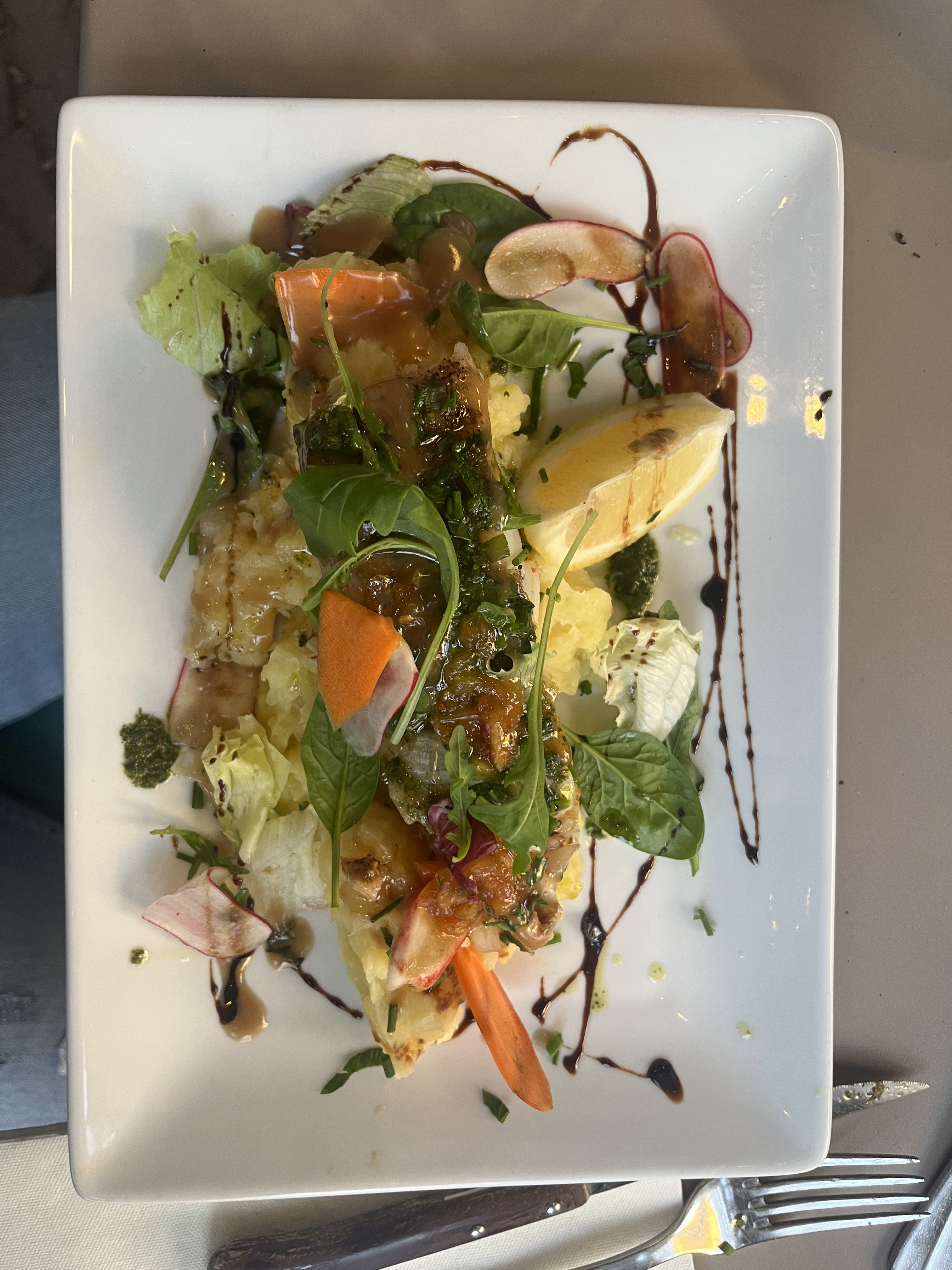 Excellent ! Un dos de cabillaud avec un risotto au parmesan juste parfait, j’ai adoré. Le lieu est très beau et mignon. Le service était parfait !! Je reviendrai.