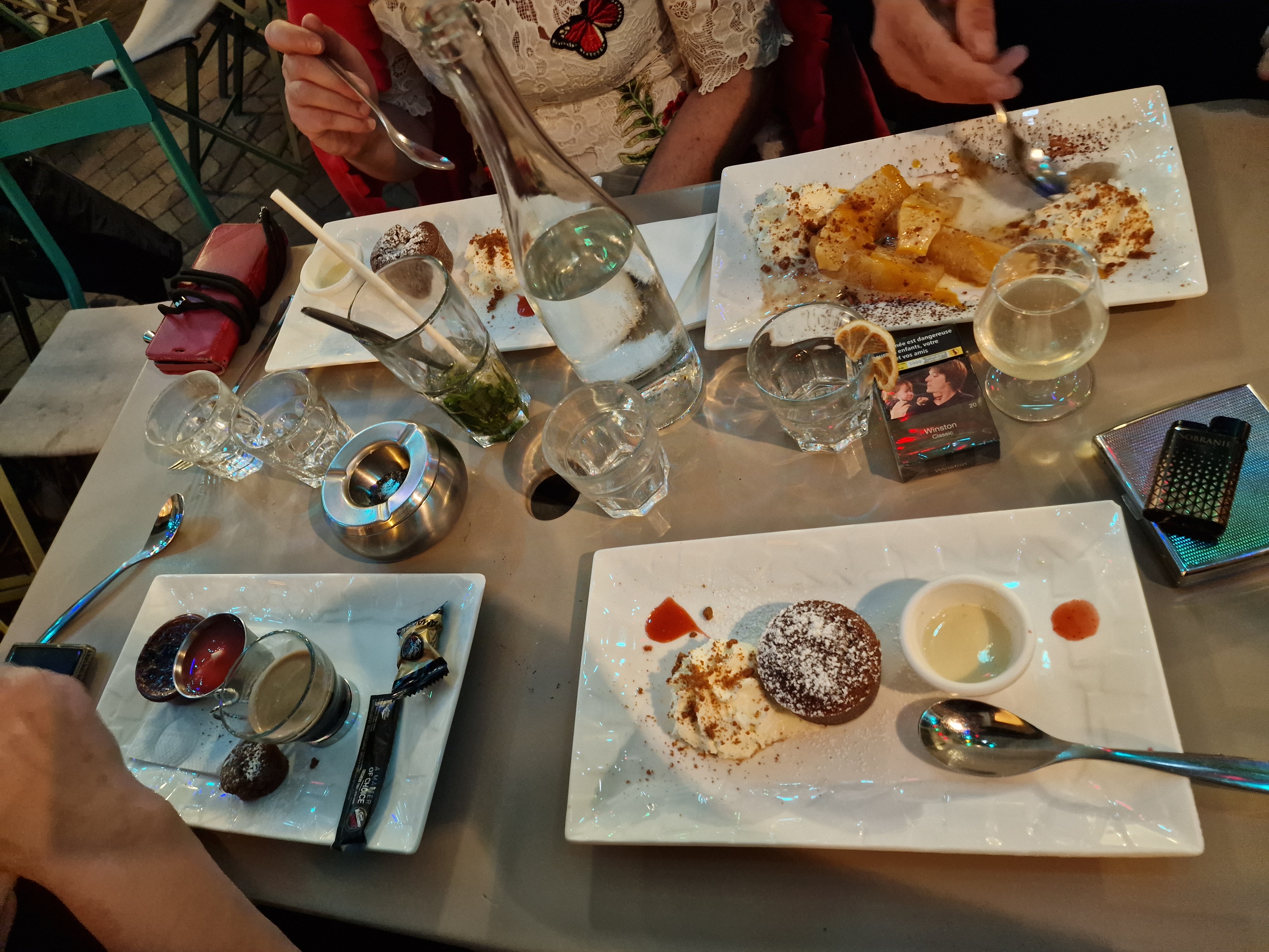 Service sympa mais j'ai été stupéfaite de voir un serveur avec son masque sur le menton toute la soirée (le serveur est beau gosse - est-ce que c'est pour cela qu'il ne le met pas?). Je ne veux pas jouer la parano mais le port du masque est obligatoire, surtout quand on passe de table en table, collé, serré. Je trouve ça irresponsable et irrespectueux en ces temps-ci. Surtout que tous ses autres collègues le portent. C'est pareil pour tout le monde, gênant certes, mais hélas essentiel en ce moment.