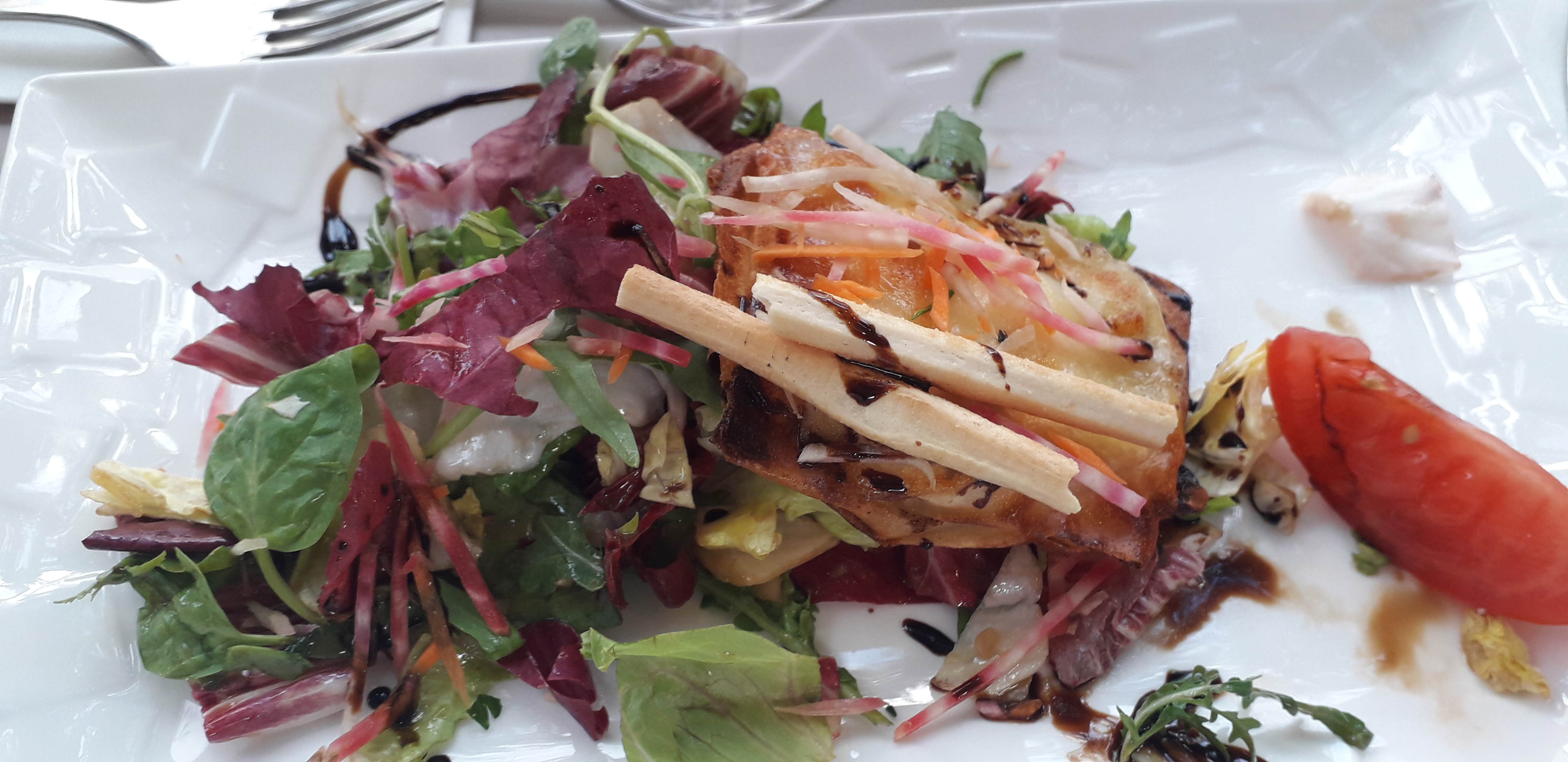 Un repas délicieux et original : tarte tatin tomate mozarella très bien assaisonnée ! Les serveurs sont très agréables et souriants. Quant au lieu, il est très mignon, la terrasse est sympathique. Un prix raisonnable