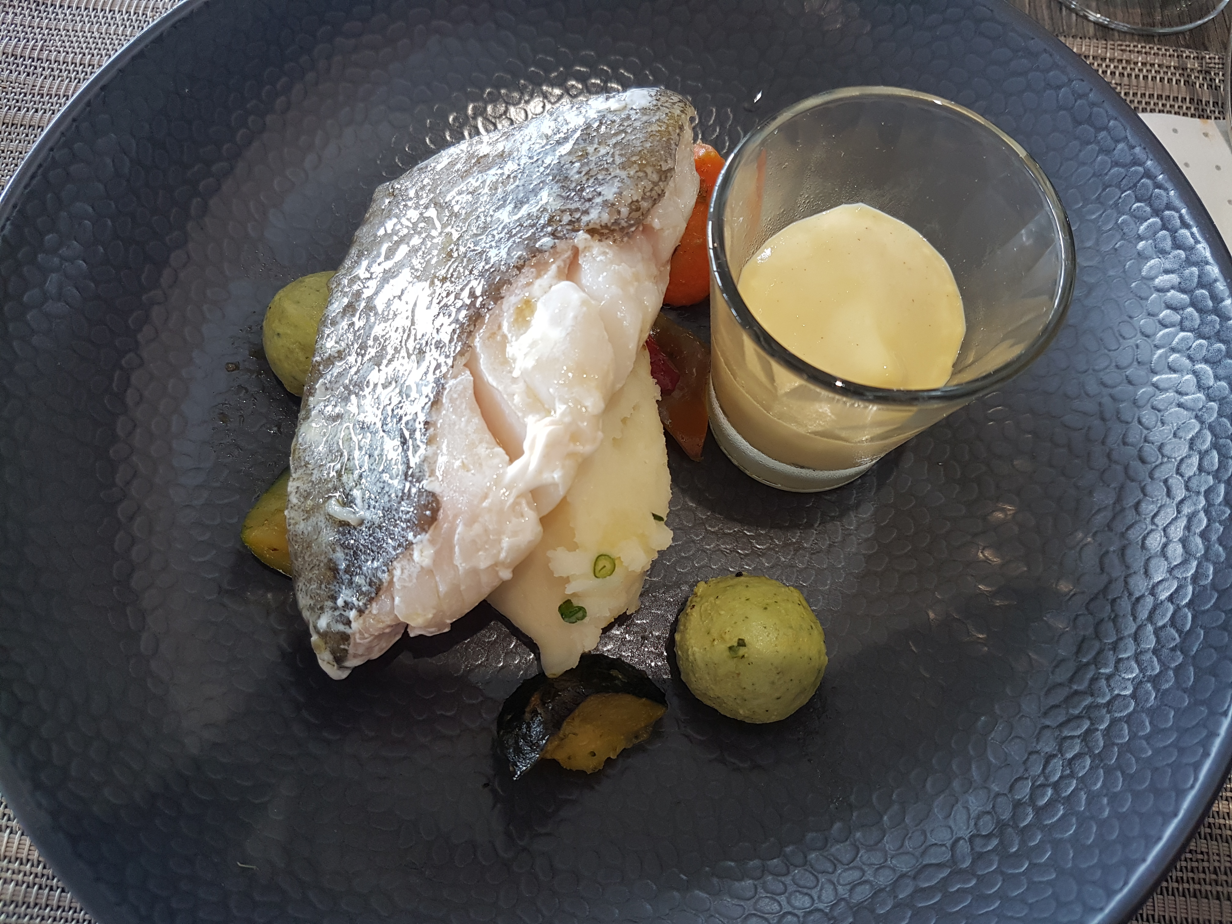 Très bon restaurant mais j ai trouvé que le cabillaud au choux et coco était très mal présenté. Curieux quand on voit la présentation des autres plats et surtout des desserts !