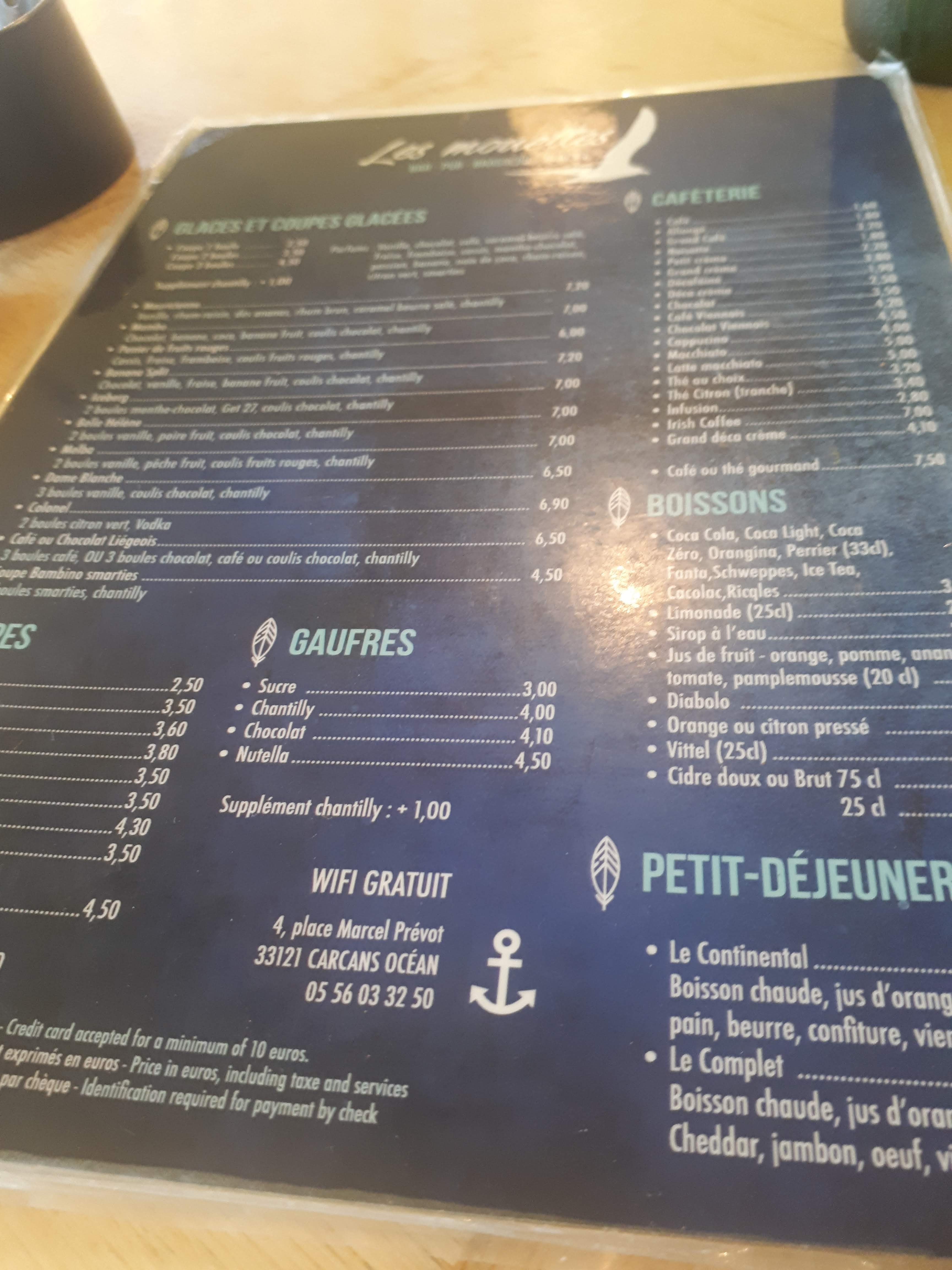 Très partagé : d'un côté un site très agréable , l'air de l'ocean , une carte variée et des moules frites . De l'autre , une cuisine PAS maison du tout (on voit les camions de plats arriver le matin tôt) et surtout un service détestable à cause de la chef de rang cette année (juilt 2016): on a pris des entrées-tapas , puis on a attendu 3/4 h les moules frites commandées en même temps ! pour se faire engueuler par cette chef : c'est de votre faute car vous avez pris les tapas avant : INADMISSIBLE comportement ! je précise que les garçons qui servaient étaient sympas et désolés !