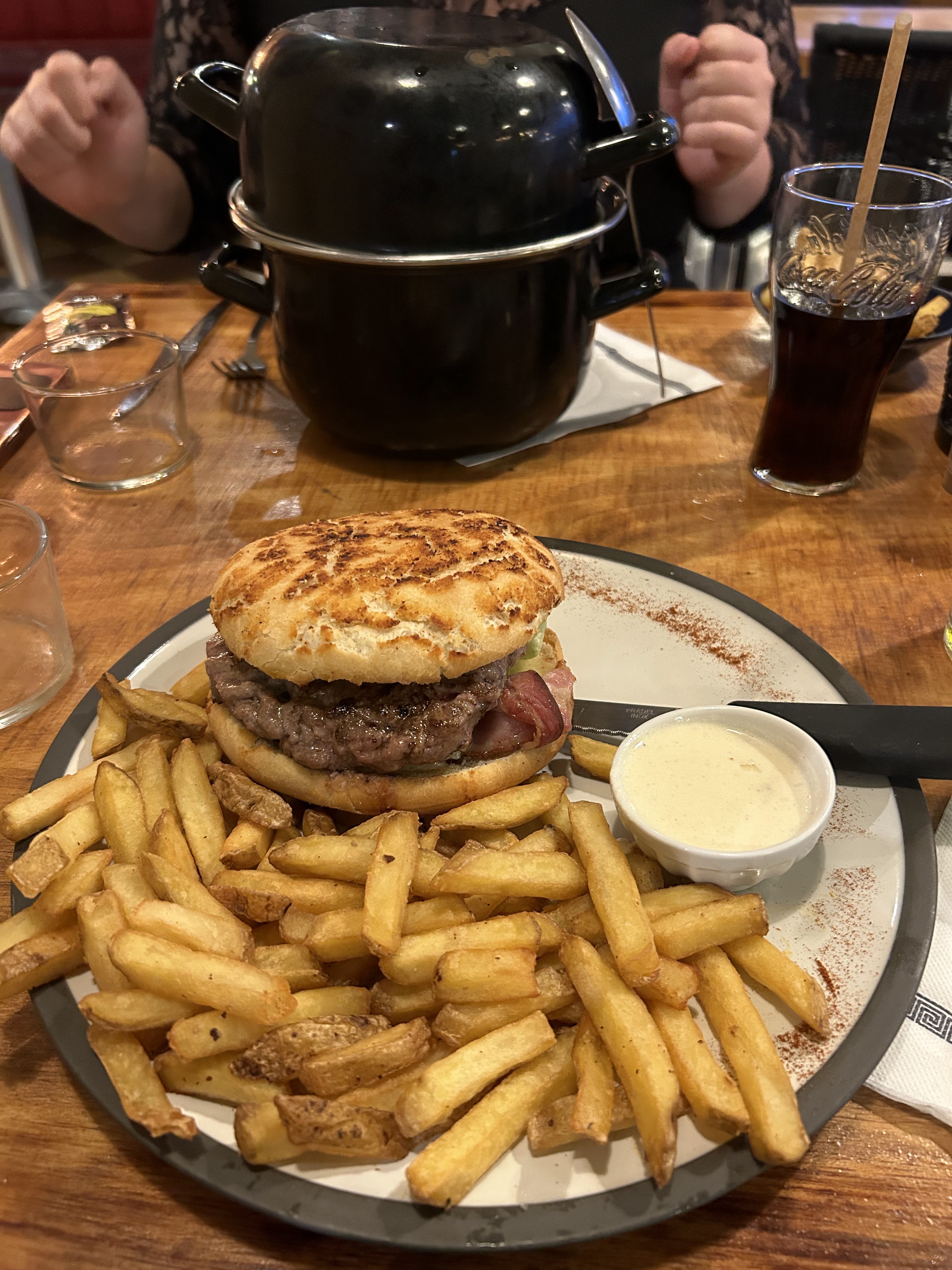 Moules à la normande et frenchy burger délicieux. Personnels dynamique et souriant