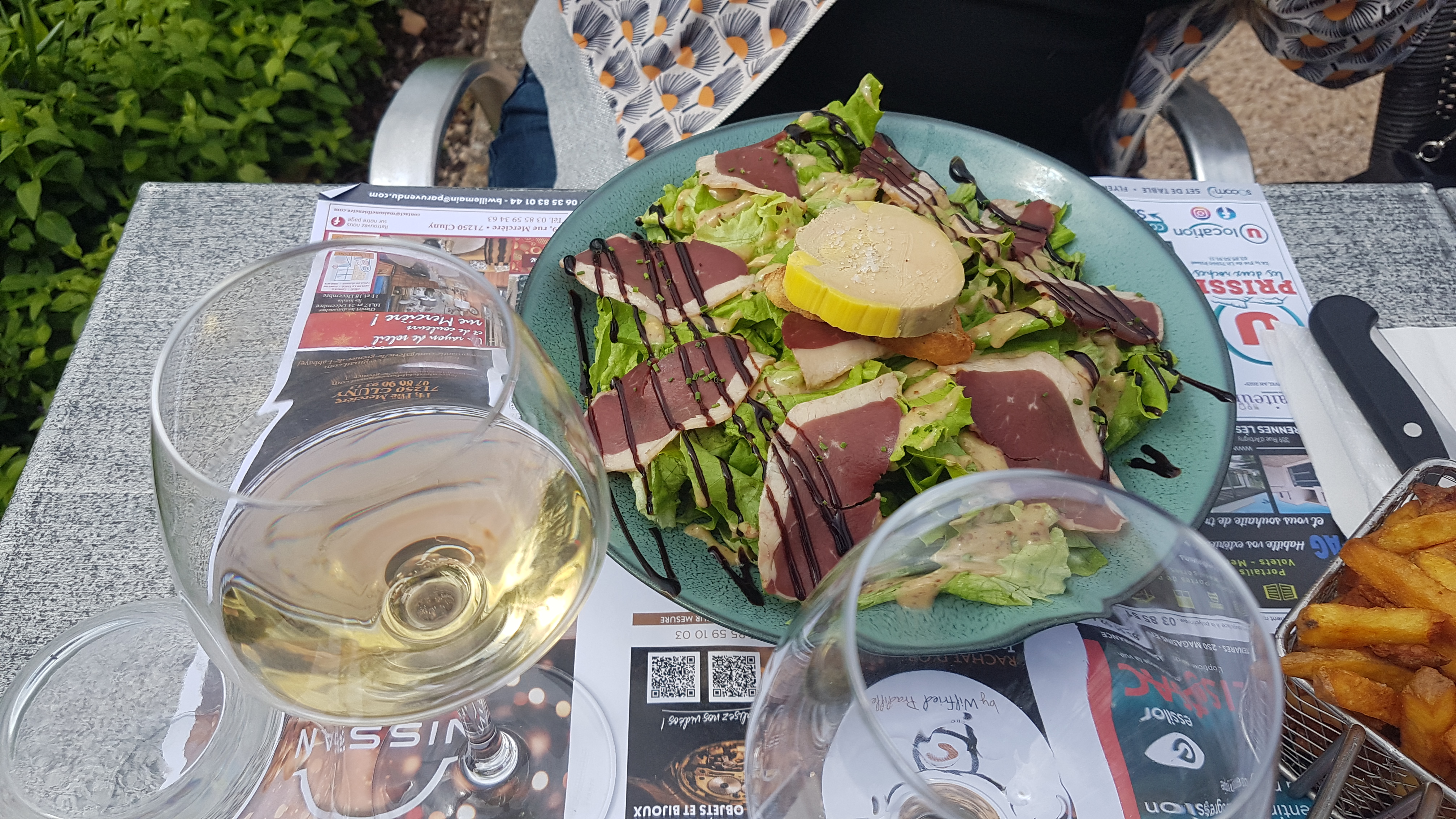Pour ma part, mon expérience a été extraordinaire ! Le service est impeccable, ma salade césar était juste succulente, je recommande fortement ! De plus, le lieu est magnifique avec une super vue sur la Saône et sur le port. Merci à vous pour cet agréable moment passé.