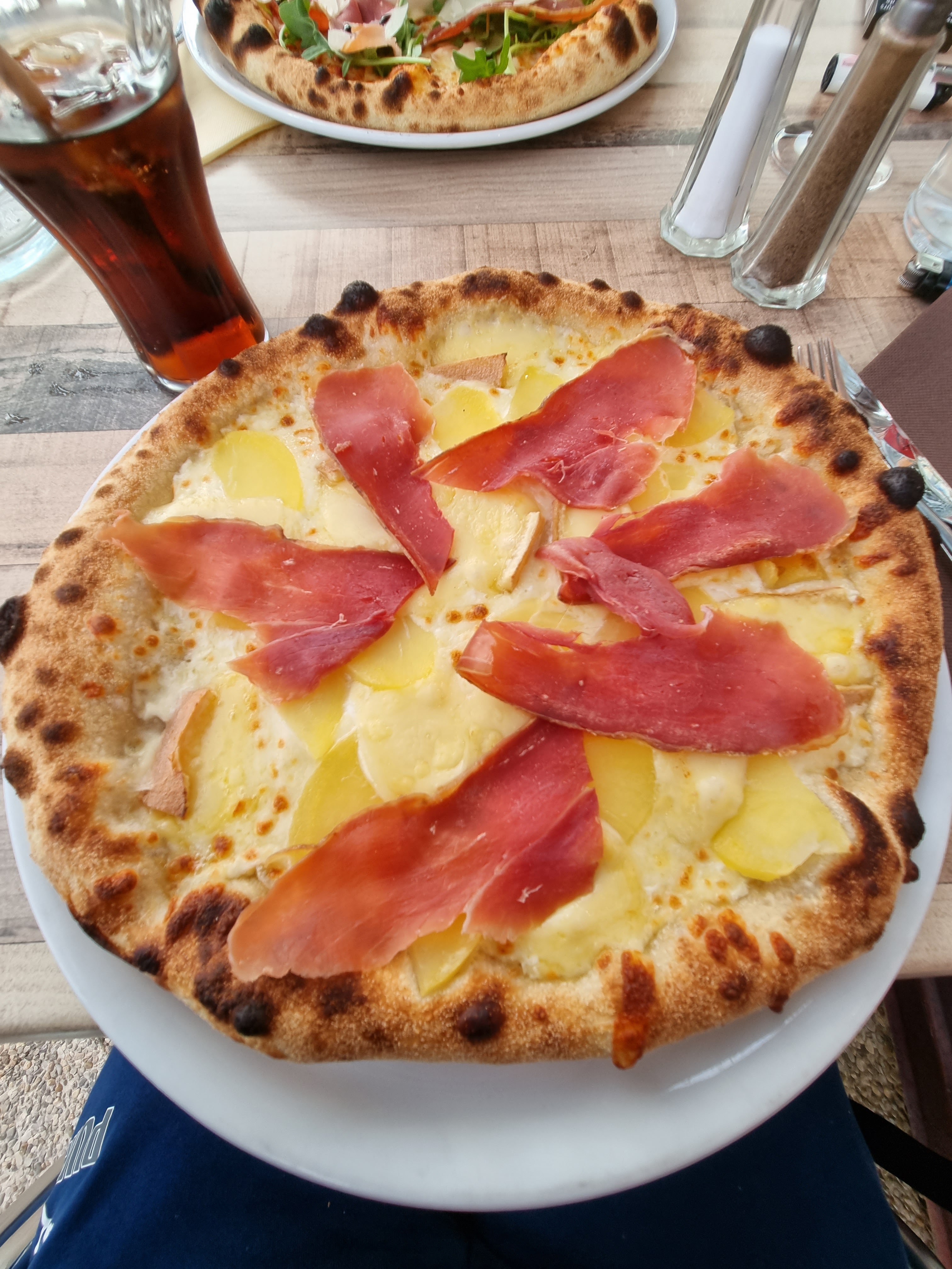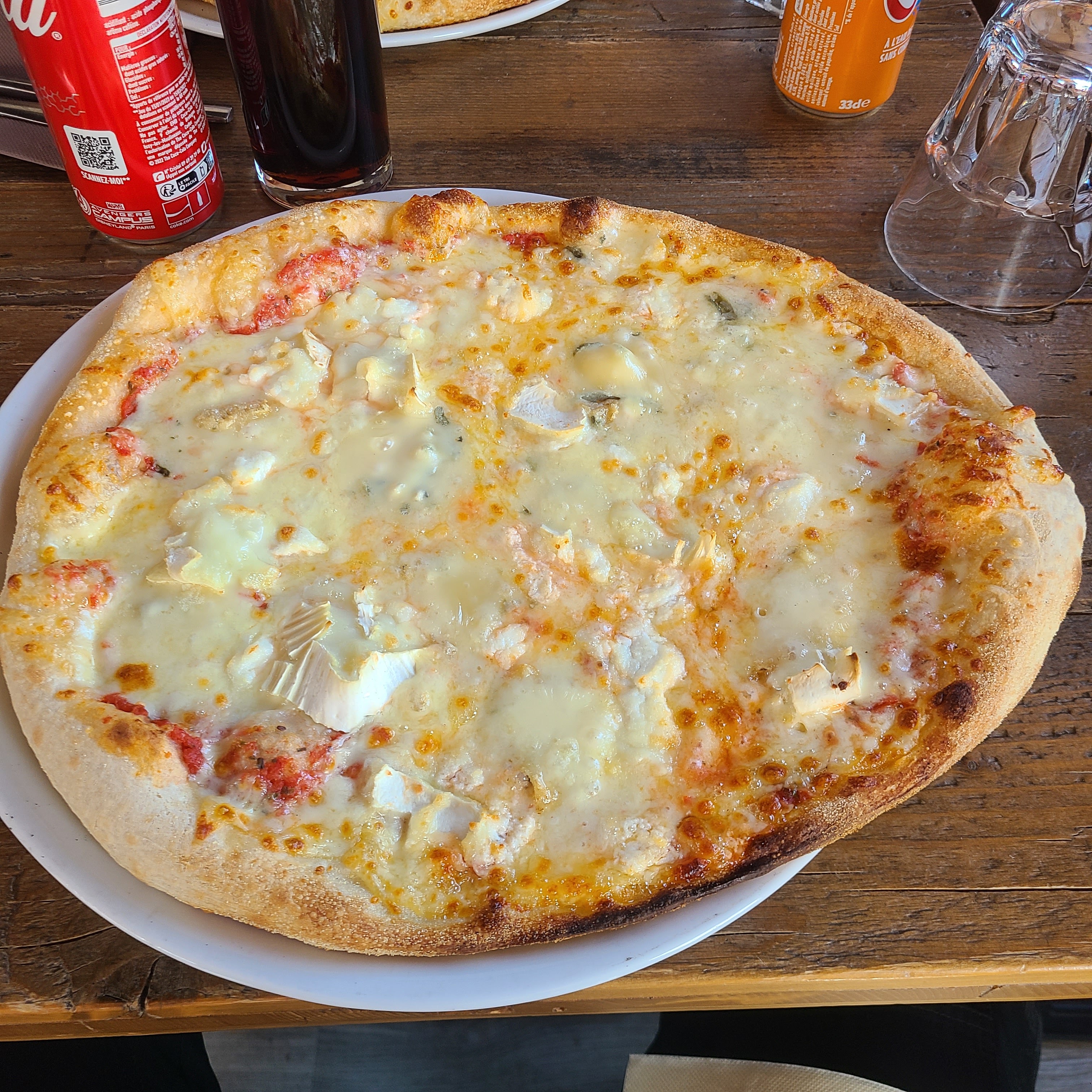 Nous avons acheté deux pizzas à emporter : elles étaient brûlés au bord (et donc in-mangeable), et le reblochon était trop fort !