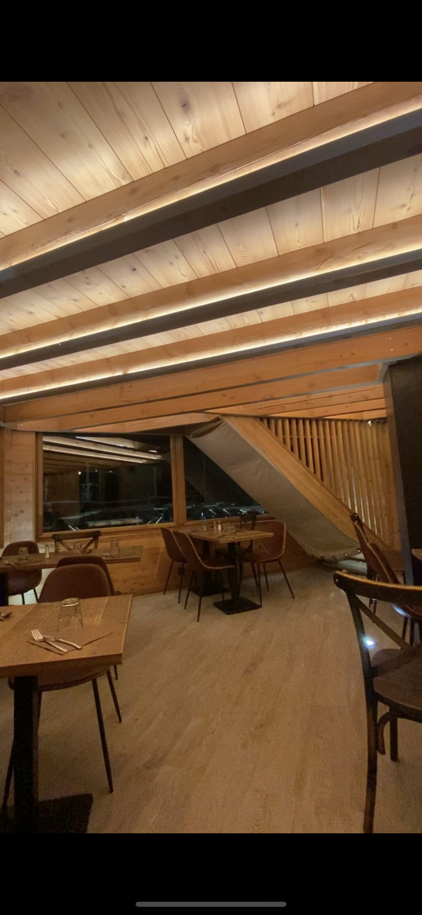 Restaurant exceptionnel en front de neige !! Service, qualité, goût, présentation, rapport qualité prix cadre... Rien à redire, tout est au top !!! . Une table de 13 personnes entièrement comblées! Le menu entrée plat dessert à 31 € est un must (de gros mangeurs bien rassasiés !)