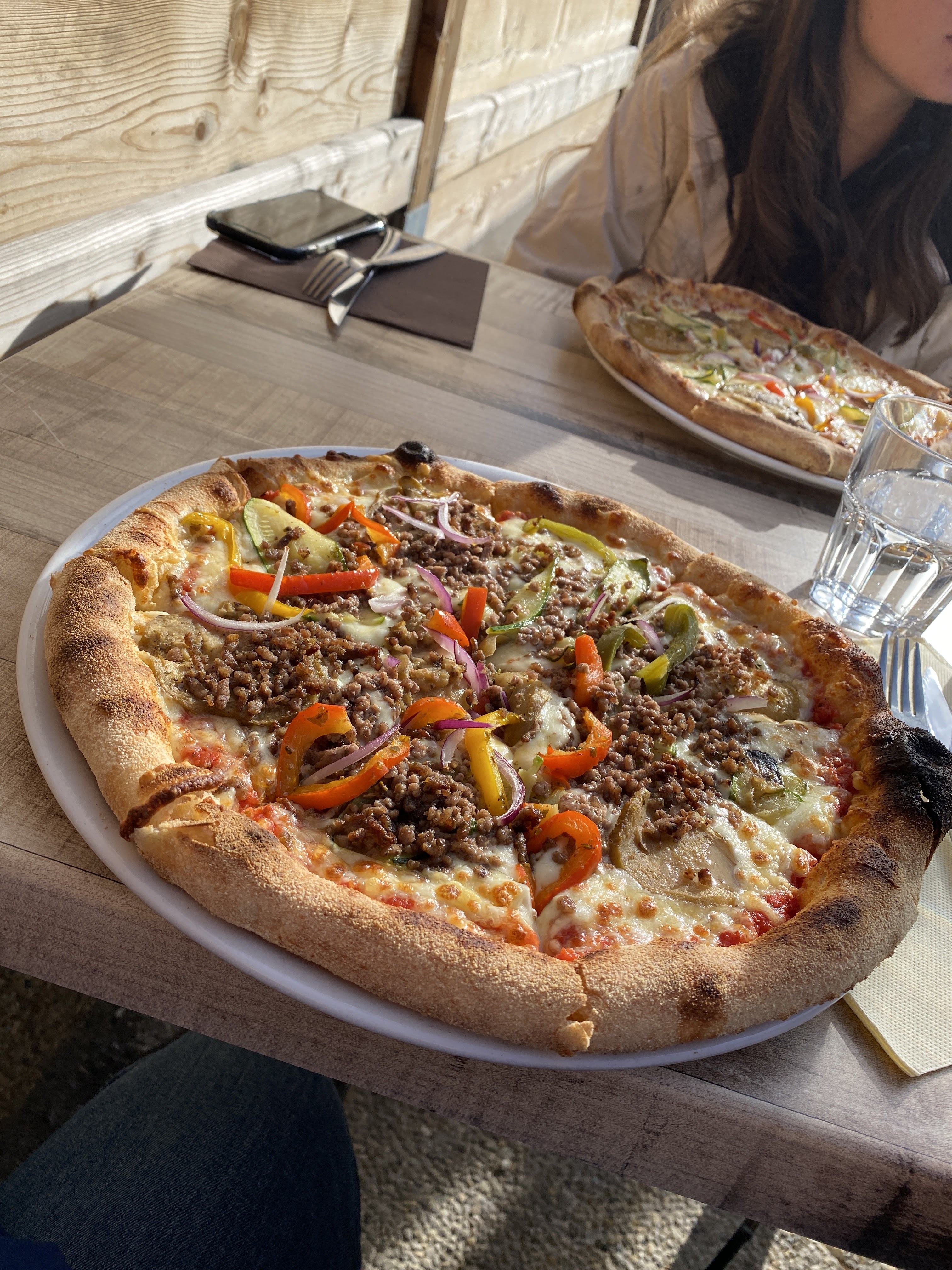 J'adore! Une bonne pizza en terrasse au soleil après une session ski, que demander de plus? Une crêpe et un café 😁 Service en 5 minutes, et personnel vraiment très sympathique !