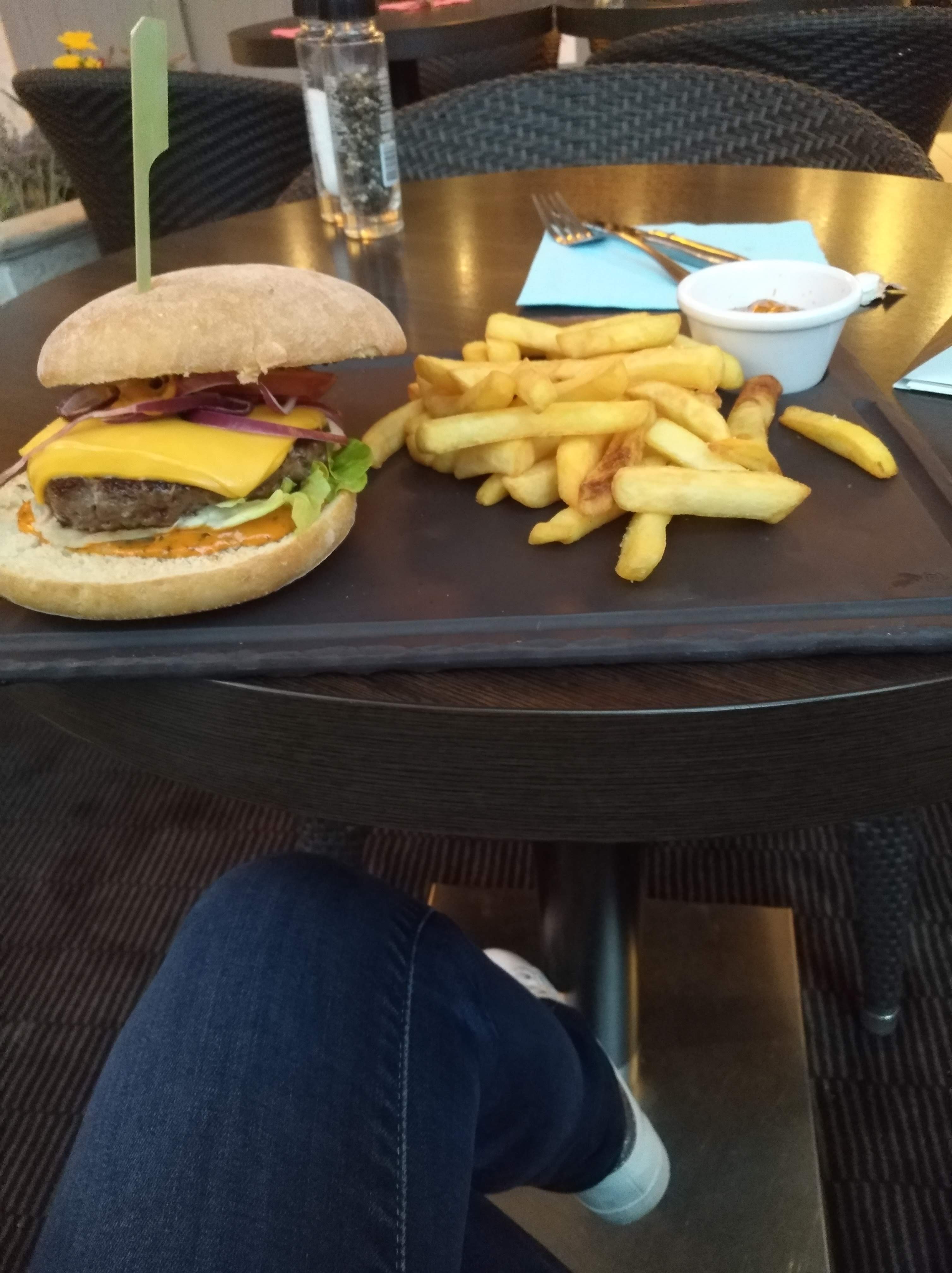 Établissement tout à fait dispensable. Prix élevé pour une cuisine très basique et moyennement qualitative ( cheddar du burger = tranches premier prix de supermarché). Service agréable et décoration agréable néanmoins.