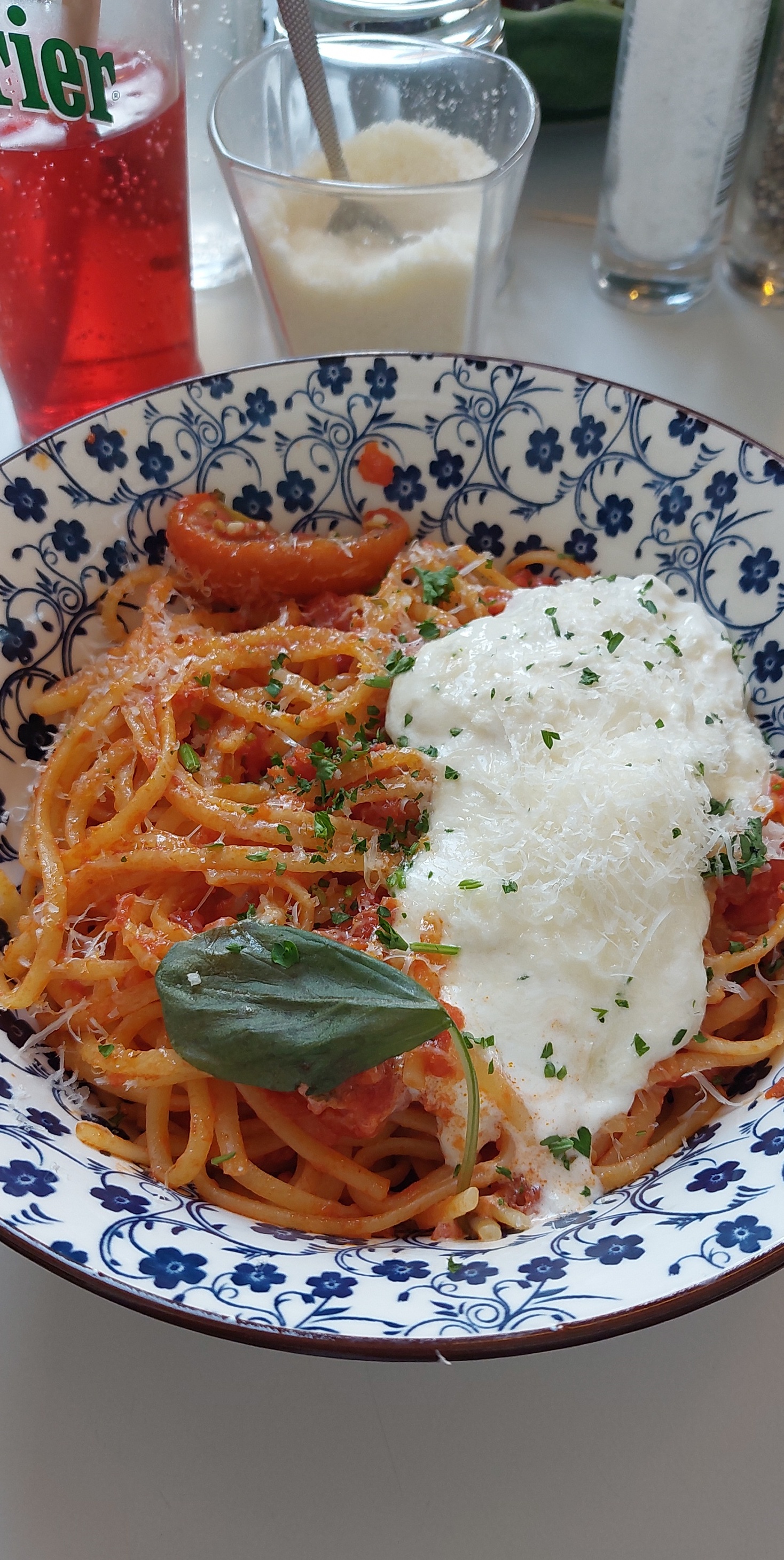 Nous avons eu un verre de terre dans la pizza à la burrata. La servante ne s’est pas excusée et ne nous a fait aucun retour. Nous avons littéralement attendu 40 minutes pour recevoir une boule de glace à la vanille qui avait fondue dans la coupe et une crème brûlée sachant que nous avions reçus nos boissons chaudes 40 minutes plus tôt. Nous n’avons pas reçu une de notre commande qui était la delicia (coupe de glace) apparemment la commande n’avait pas été prise. Une autre servante vient de prendre la commande et nous a dit que cela prendra 2 minutes. La salle est assez calme et c’est pourquoi nous n’avons pas compris les dysfonctionnements. Déçue du service de la jeune fille qui n’a pas forcément été souriante.