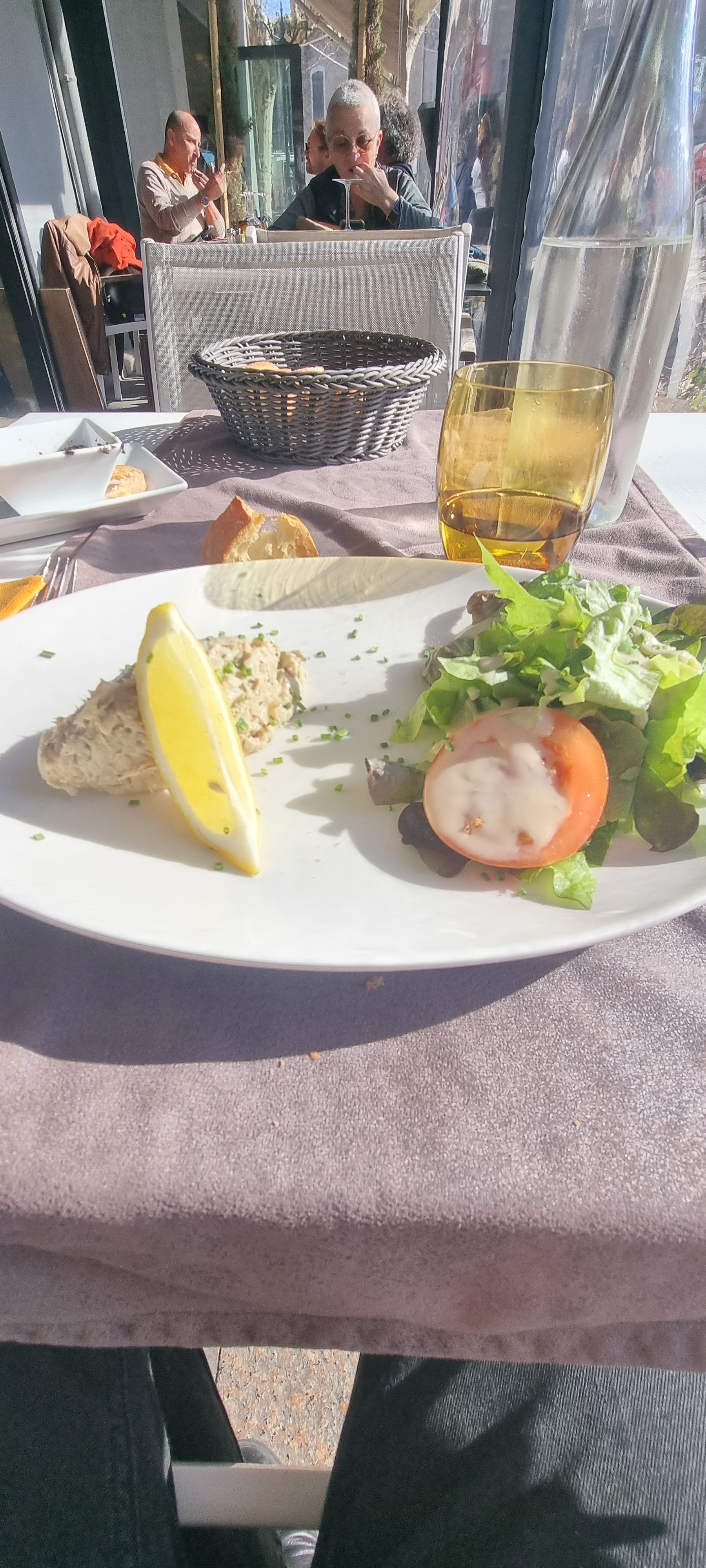 Après une tapenade offerte avec du pain grillé, une salade de la mer aussi belle à regarder que délicieuse à manger. Le service est rapide et la serveuse adorable. Une adresse à noter pour notre prochaine visite à Montelimar, noisy reviendrons.
