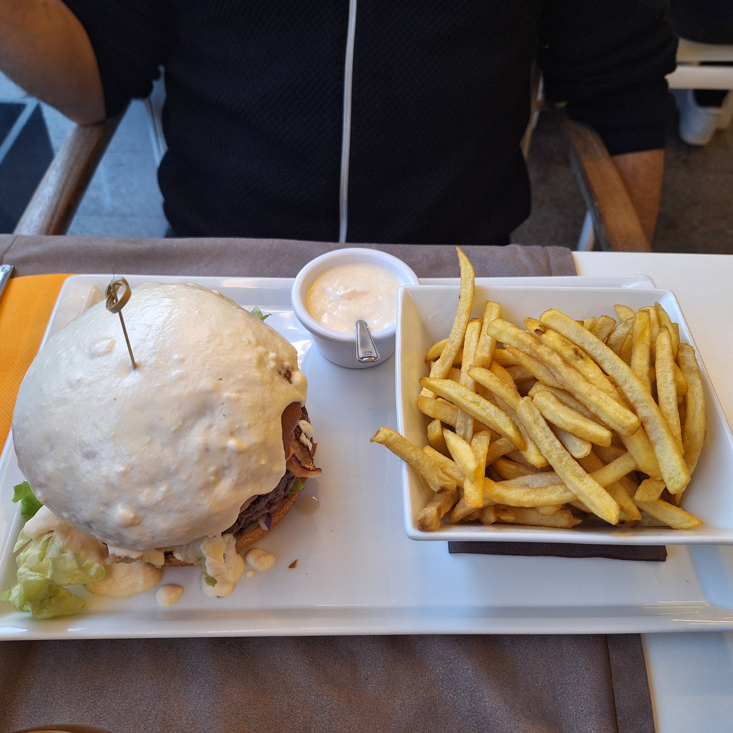 On cherchait une table pour 5 et il était 13h30 pas très accueillant et l' équipe semble être débordée...on nous dit On a une table de 4 donc pas possible, ils ont juste pas envie de nous recevoir donc je déconseille. Ils ont bien fait de refuser grâce à eux on a trouvé un très bon restaurant juste à côté où on a été bien accueilli et les plats étaient bien bons. L' Atelier Grill que je recommande on y est bien accueilli et le avec le sourire.