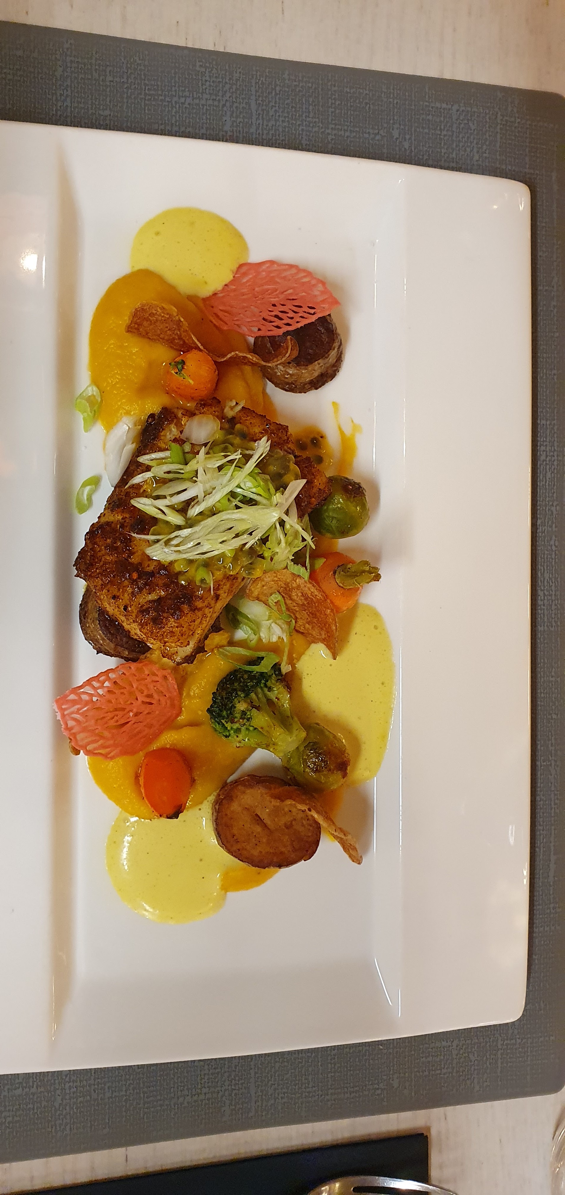 Juste parfait 20/20 Tout les goûts le dressage le cadre je recommande 100% Bravo au chef !! Karl pinault