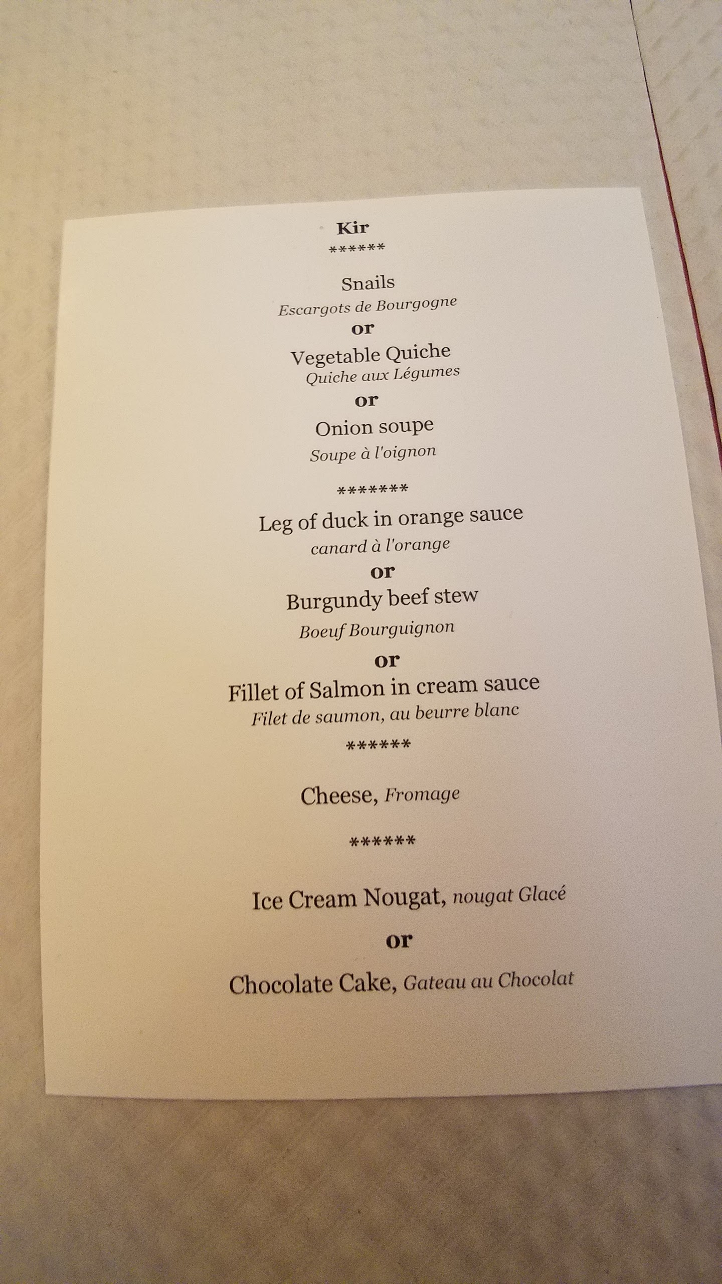Bon restaurant avec l'accordéoniste par excellence pour vous divertir pendant que vous mangez. J'ai mangé des escargots pour la première fois ici et ils étaient plutôt bons. Le canard était bon mais le ragoût de bœuf était un peu léger sur les légumes et lourd sur la Bourgogne. Les desserts étaient très bons. Bons vins de la maison. Excellent service client et ambiance. Bon pour les groupes.