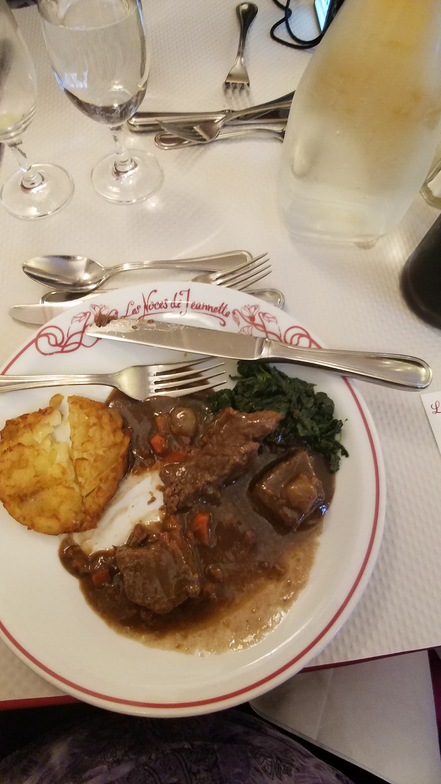 J'y suis allé avec un groupe et j'ai pris un repas composé de salade avec crevettes, bœuf bourguignon et gâteau au chocolat. Le gâteau était ma partie préférée du repas.