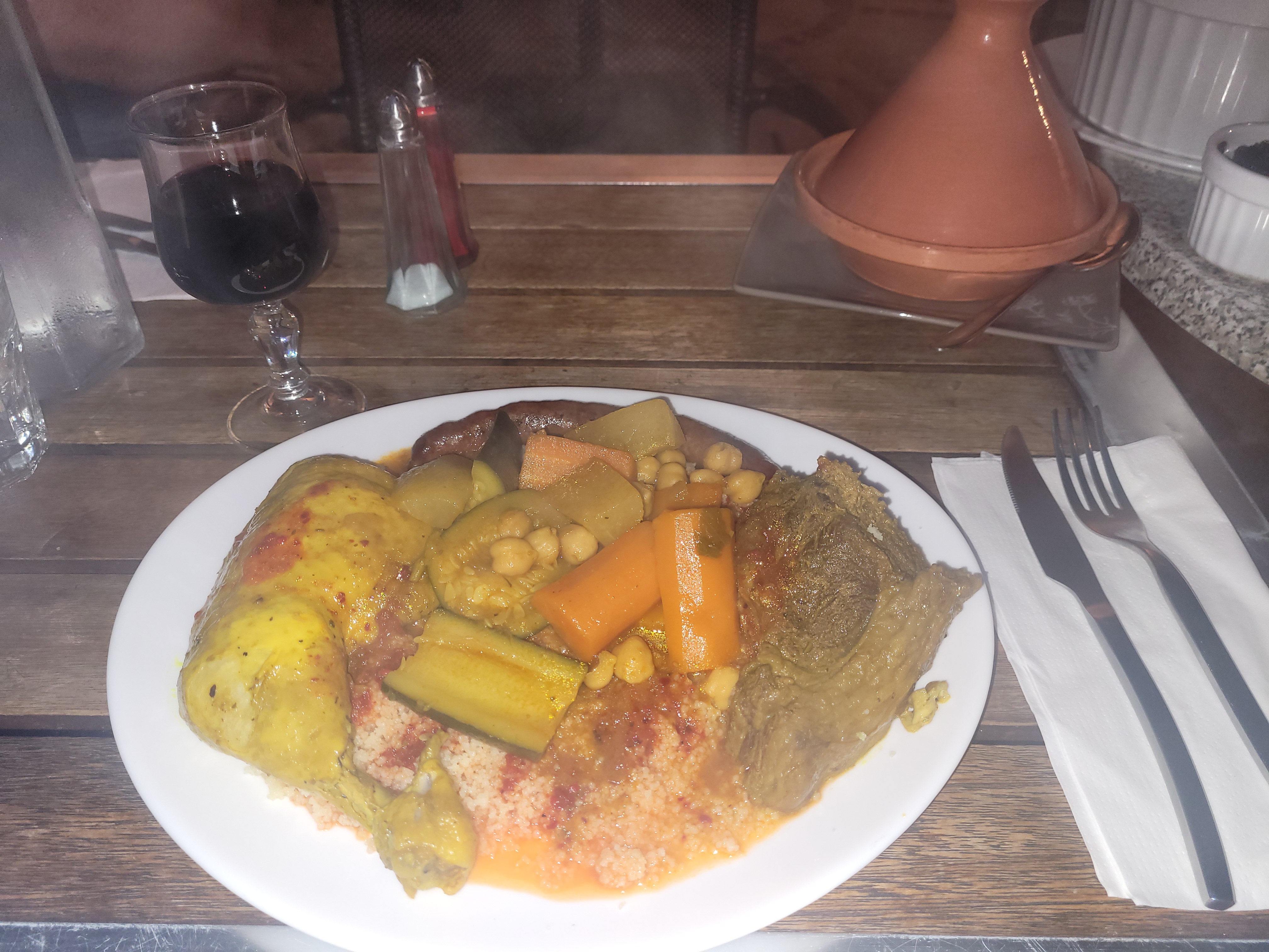 Couscous délicieux et bien servi pour un rapport qualité prix plus que raisonnable 1 kir 2 bière 2 couscous 1 thé Pour 49€