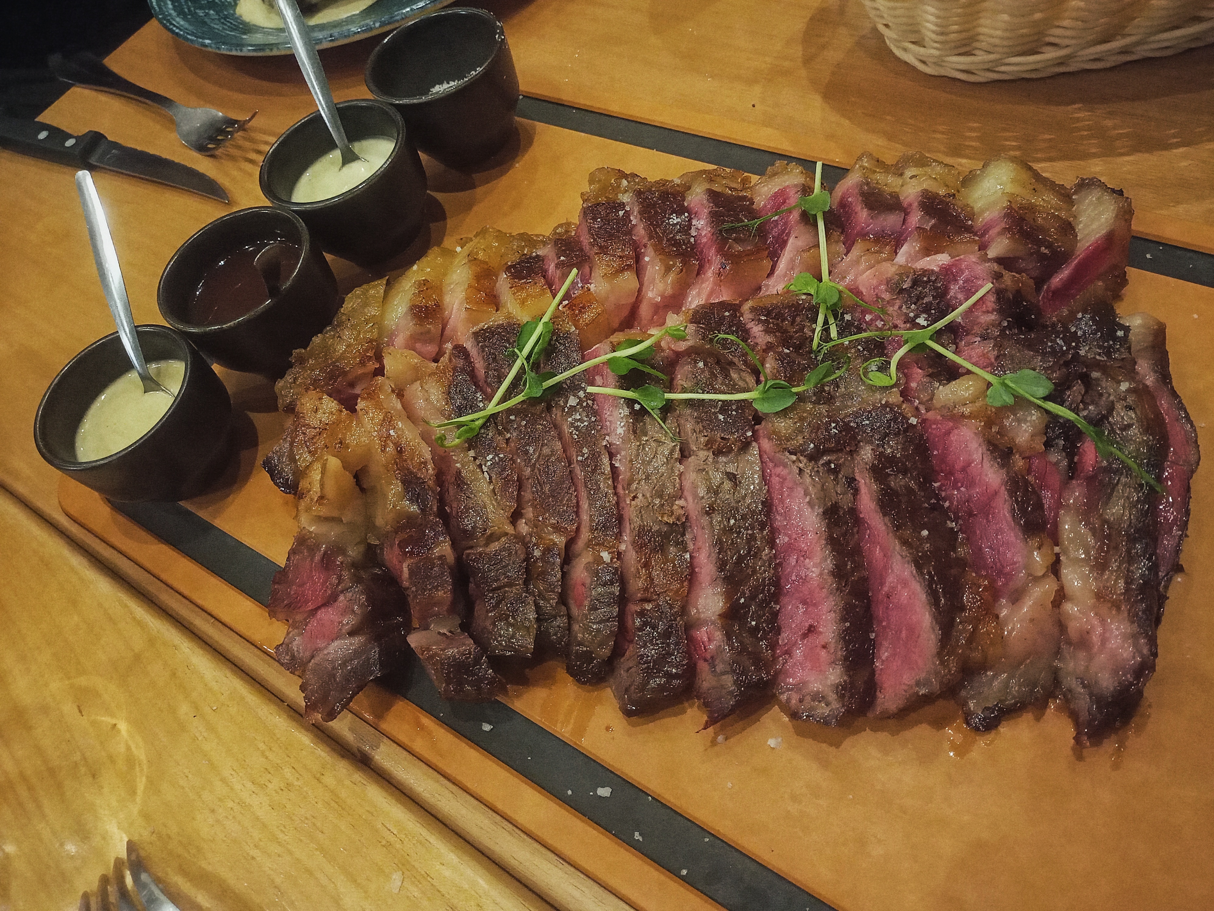 Larges choix de côte de bœuf. La viande est excellente et savoureuse! Je recommande si vous voulez une bonne pièce de viande! Serveurs très sympathiques! Par contre, on aurait préféré une ambiance un peu plus tamisée ;)