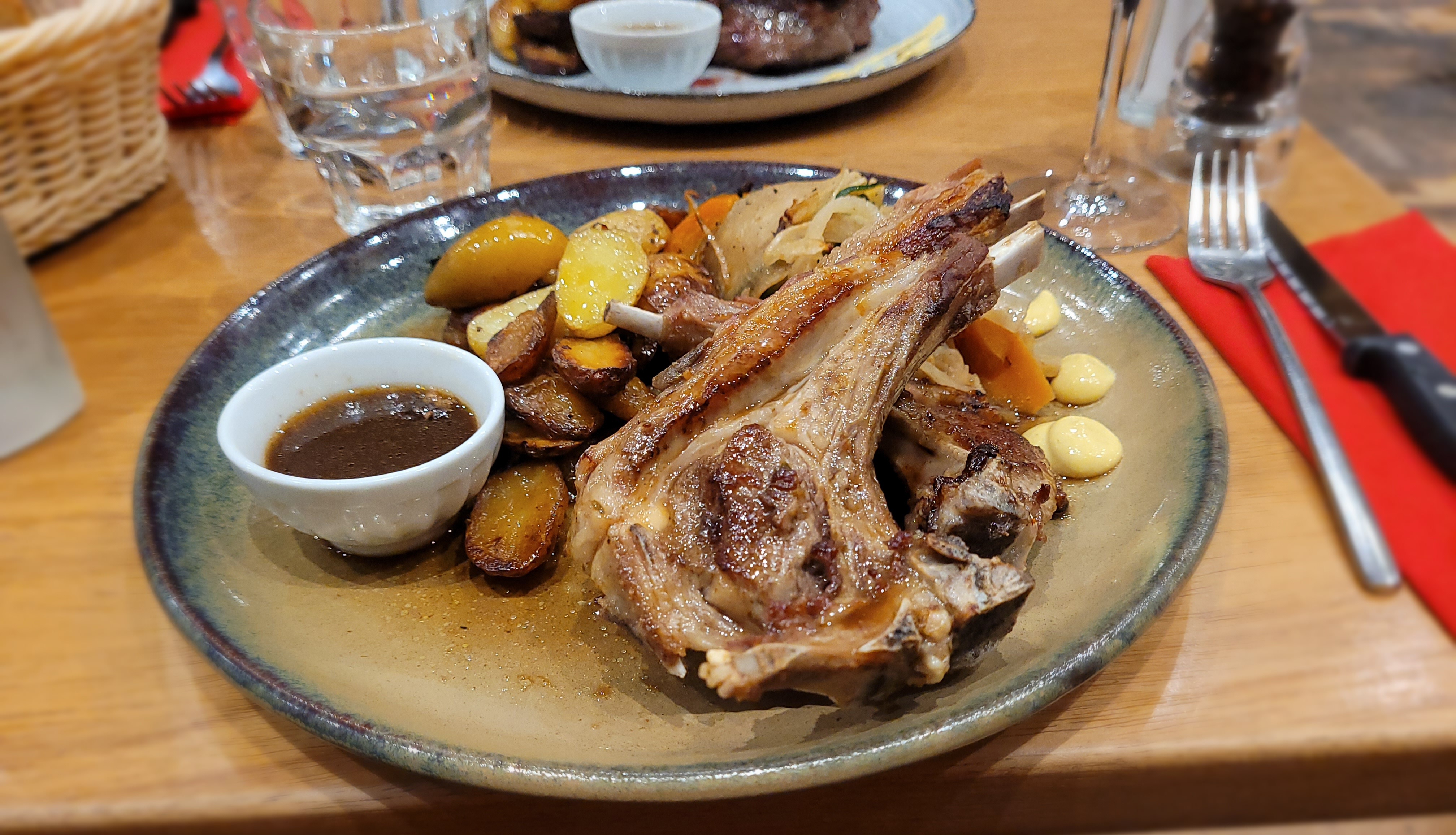Viande d'agneau de qualité et cuisson maîtrisée. Les os a moelle étaient par contre trop cuits. Dommage. Serveur très sympa.
