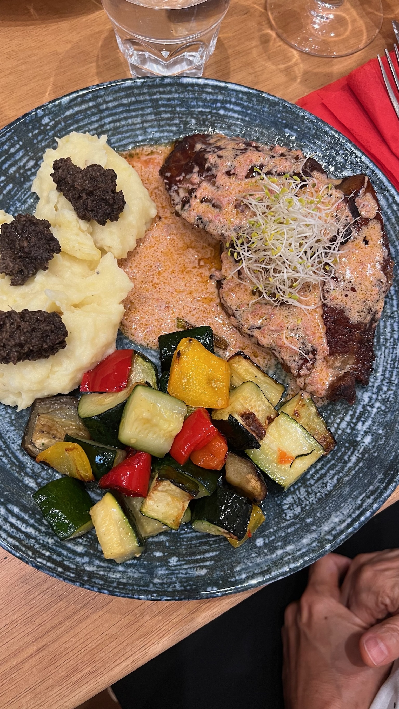 EXCELLENT 😍🤩🤩 Service impeccable, agréable, relax … Des plats très agréables en bouche et une nourriture de qualité. Une mention gagnante pour les cœurs de canard et les côtes de bœuf/veau 👌👌