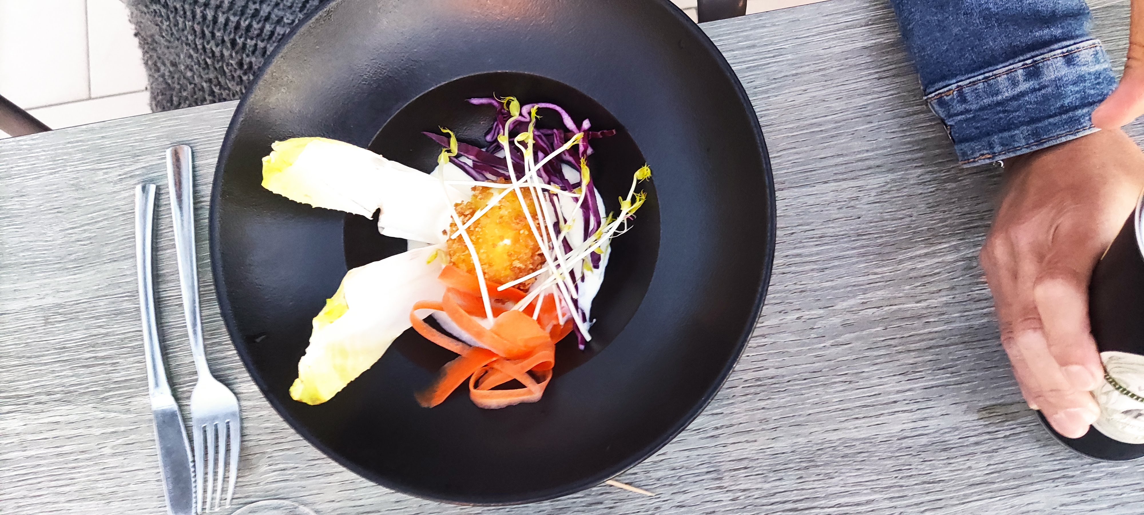 Au fond d’un parking un endroit très agréable avec une terrasse vue sur mer Le décor est épuré et très agréable Le service irréprochable et la cuisine originale Très bon moment à passer pour les amoureux de la table...