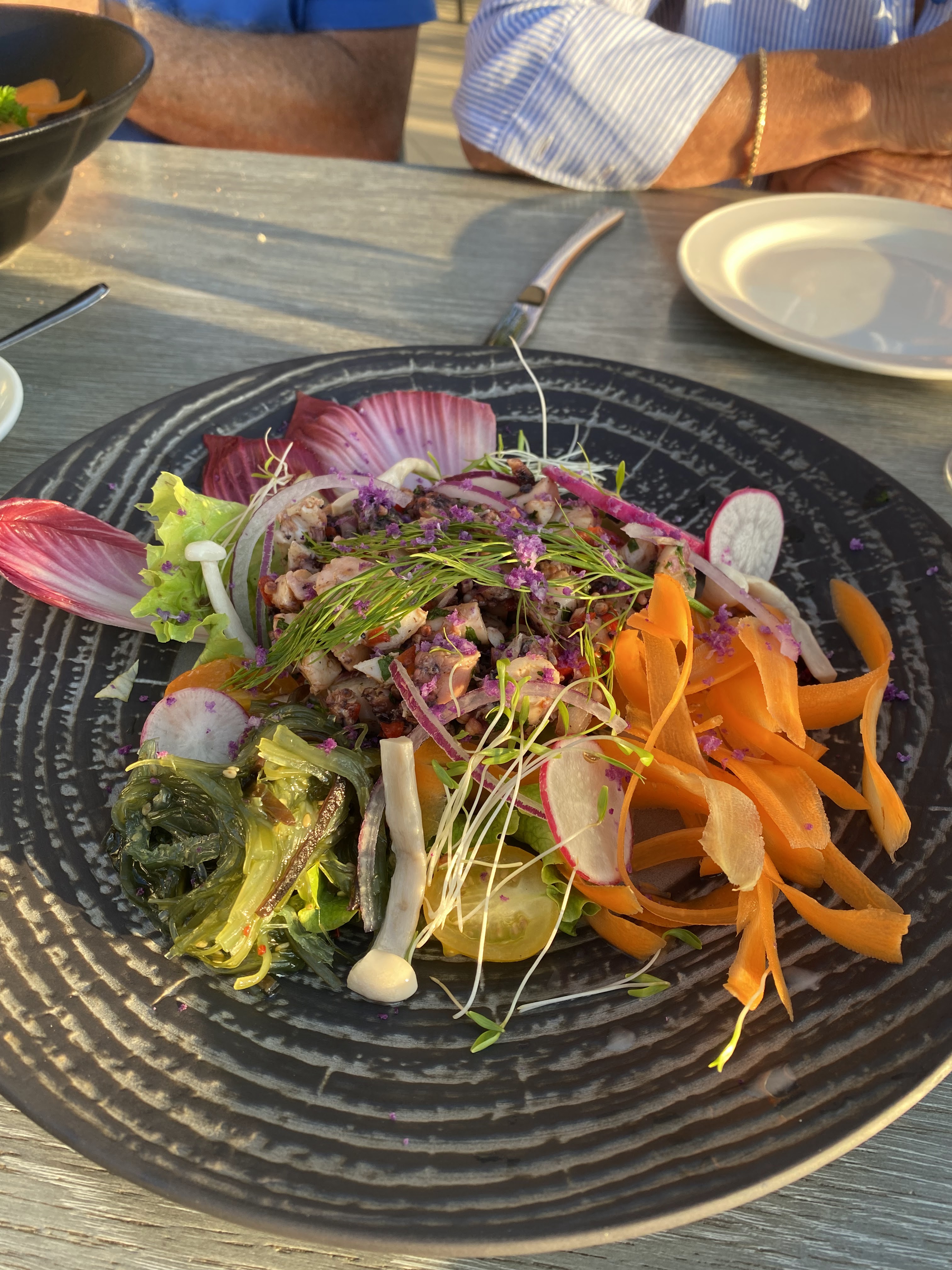 Le cadre est toujours aussi sympa, la terrasse est super. Les plats sont bien présentés et j'ai adoré pouvoir manger du poulpe. Le seul bémol c'est le prix que je trouve un peu excessif, mais ça a été une bonne expérience !