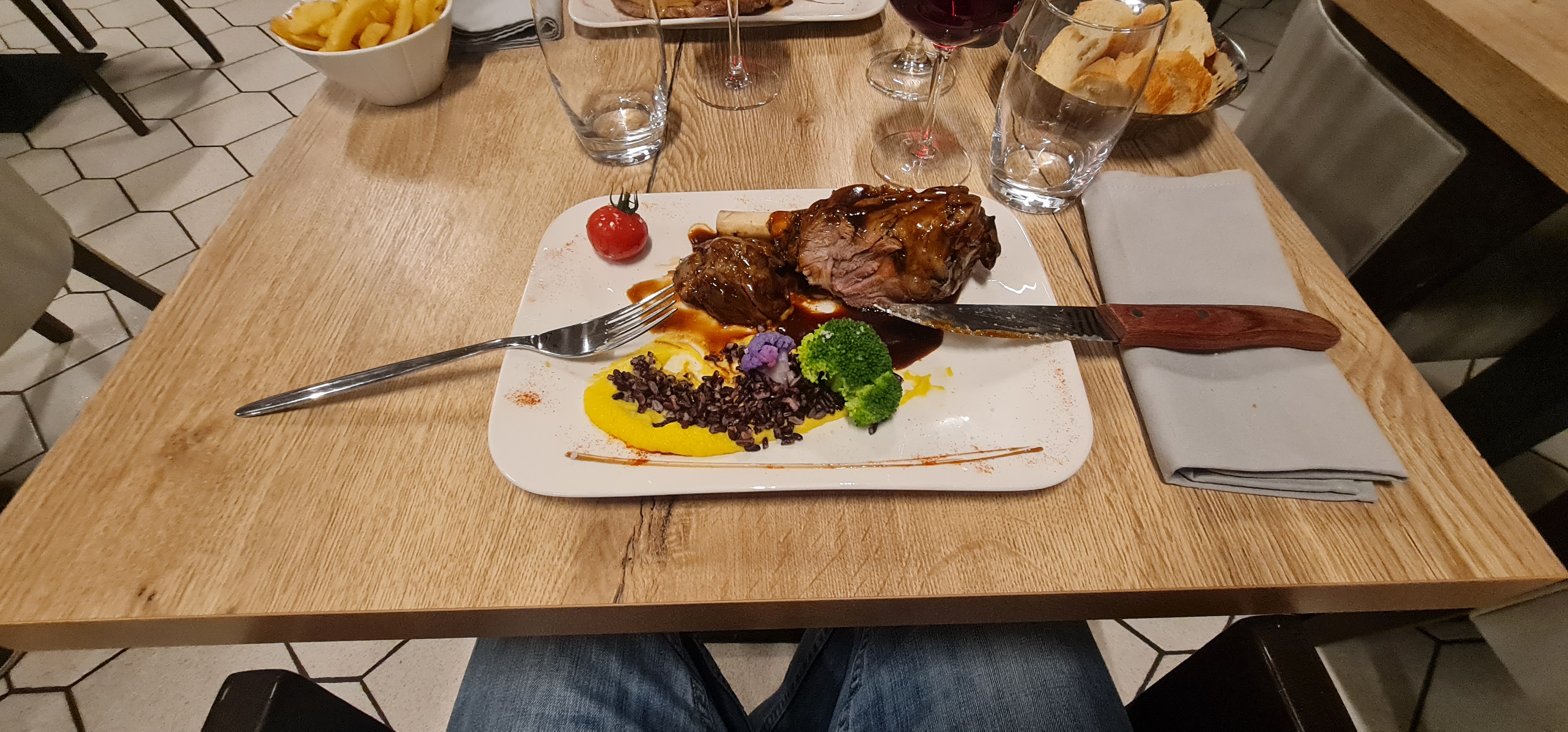 A propos du restaurant : Très bon restaurant. Le cadre est épuré. Le service est chaleureux et attentionné. La nourriture est excellente avec des plats généreux et délicieux. C’est un peu cher mais la qualité est au rendez-vous. A propos de l’hôtel : Hôtel aux parties communes vétustes de prime abord mais bien entretenues avec des chambres entièrement refaites et modernes. La localisation est idéale, tout proche des points d’interêt de la région. L’accueil est chaleureux. Les chambres sont confortables avec une bonne literie. La salle de bain est correcte. Le petit-déjeuner est très copieux (croissant, gaufre, pain, confitures/nutella, charcuterie, fromages, produits laitiers, boissons chaudes, fruits, yaourts…), le seul bémol étant l’absence de nourriture chaude (oeufs brouillés, bacon…).