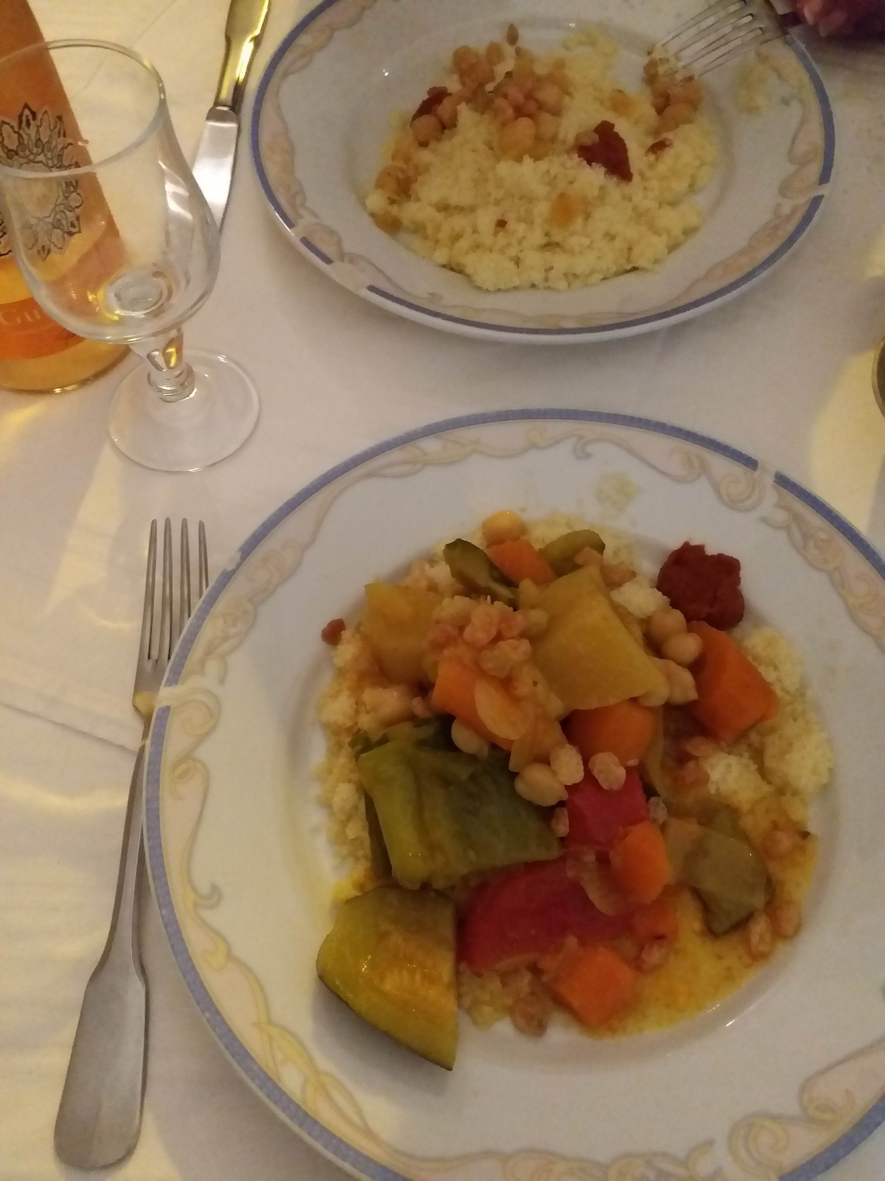 Ne pas se fier à la décor ancienne, Le meilleur couscous du quartier, portions généreuses, et les 7 légumes qu'il faut avoir dans ce plat Marocain.