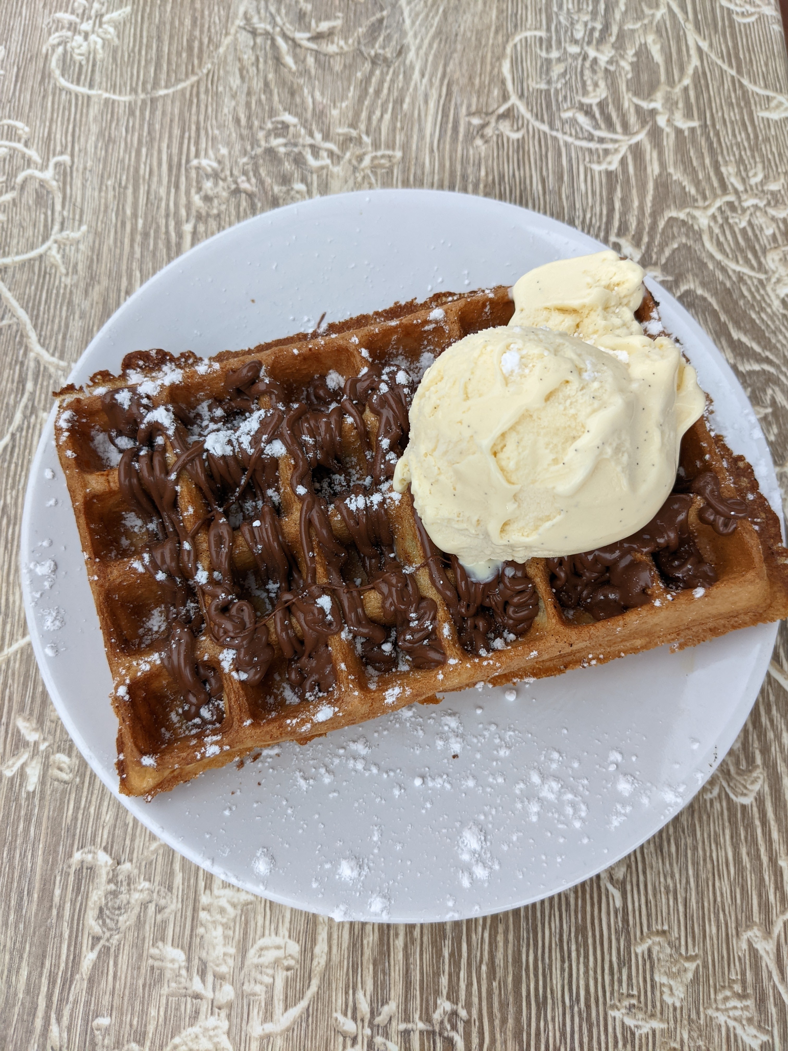 Mauvais accueil, ni bonjour ni au revoir. Nous avons commandé 1 gaufre et 1 crêpes. La gaufre était cramé sur le bas et la crêpe très sèche sans aucun goût. Pour le prix que c’était, très déçus.