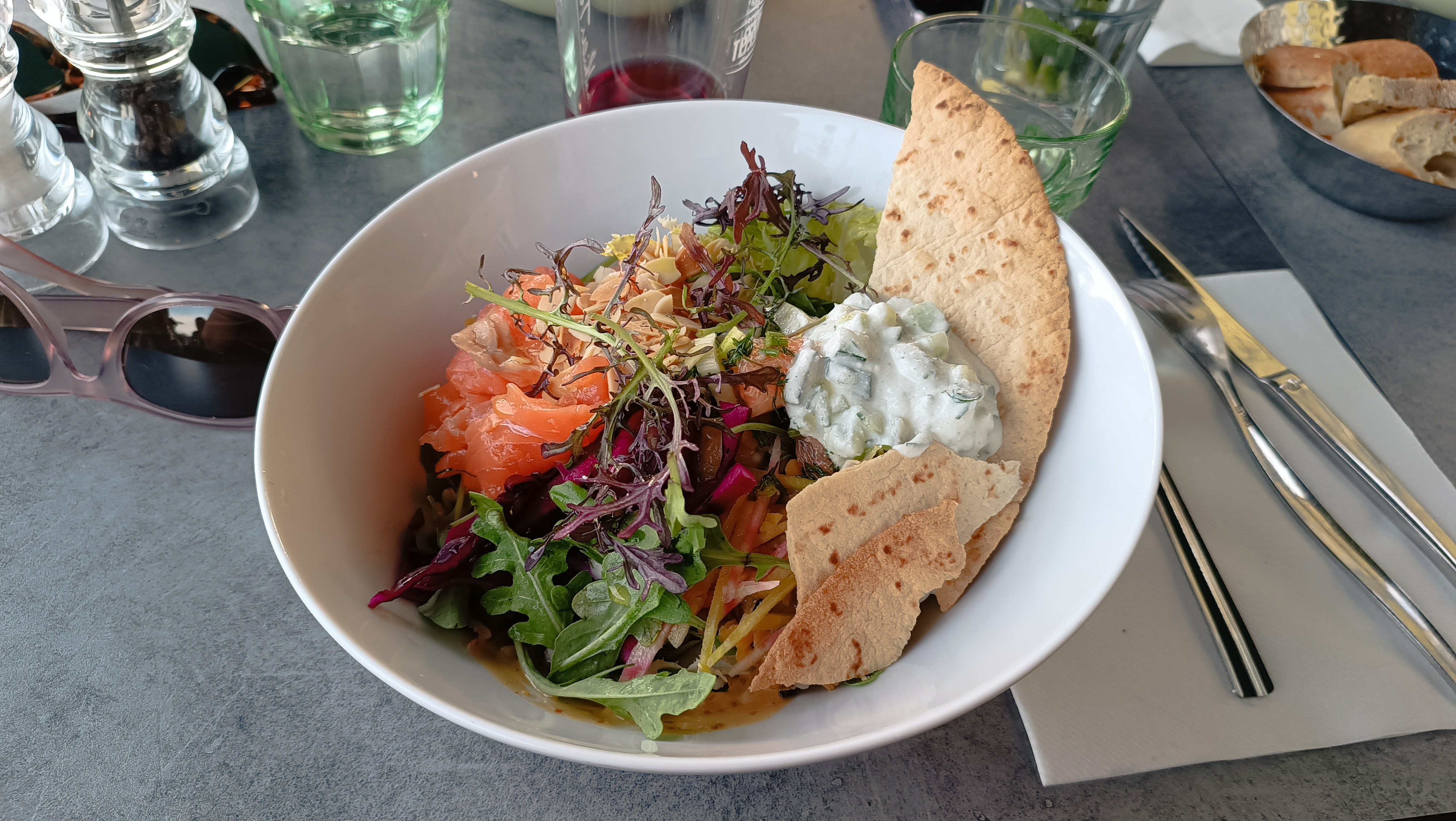 Le port de La Rochelle en cadre! Mais cela ne fait pas tout... Merci à l'équipe pour leur accueil. 2 déjeuners consécutifs: poke bowl très frais avec son tartare de saumon et assiette de la mer servie avec sourire et bonne humeur malgré l'heure très tardive. Des produits frais, goûteux...