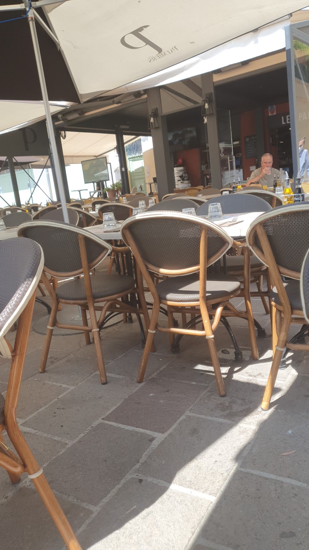 Déjeuner sympathique aux Palmiers, pizza très bonne et relativement copieuse et salade de chèvre chaud excellente. Une étoile en moins pour l’accueil qui n’était pas très chaleureux.