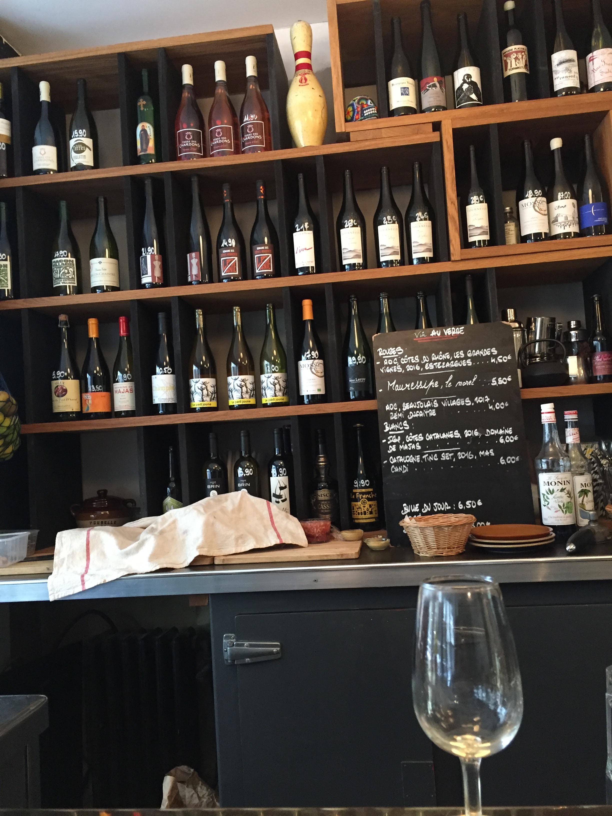 Je ne vais pas parler du resto mais de la cave qui a été ouverte l'année passée le pas de porte d'après. (Resto très bien, avec des produits de saisons et des assiettes créatives). La cave et les vins en général, natures pour la très grande majorité voire 100%, sélection exigeante avec des refs qu'on aime bien (Pépin, Dard & Ribot, etc). Mais un bémol quand même concernant les horaires affichés. Je suis venu 2 fois, 2 samedi d'affilés vers les 17.30/45 et la cave était fermée malgré le 17-20 annoncé (déjà horaire un peu pourri hein !). Où l'on me dit au resto qui est en prépa de sevice : oui il est sorti faire un truc, il devrait déjà être rentré. Bref, c'est pas pro du tout, je sais bien qu'on est à Pantin, qu'on se tutoie tous et qu'on est maitre de son propre commerce, mais quand même. Moralité ? J'ai lâché 60€ de flacons au concurrent Aux Vins Vivants qui ont aussi de supers refs même si je suis moins fan de l'accueil (c'est aussi pour ça que je vais aux Pantins, que je trouve plus détente).