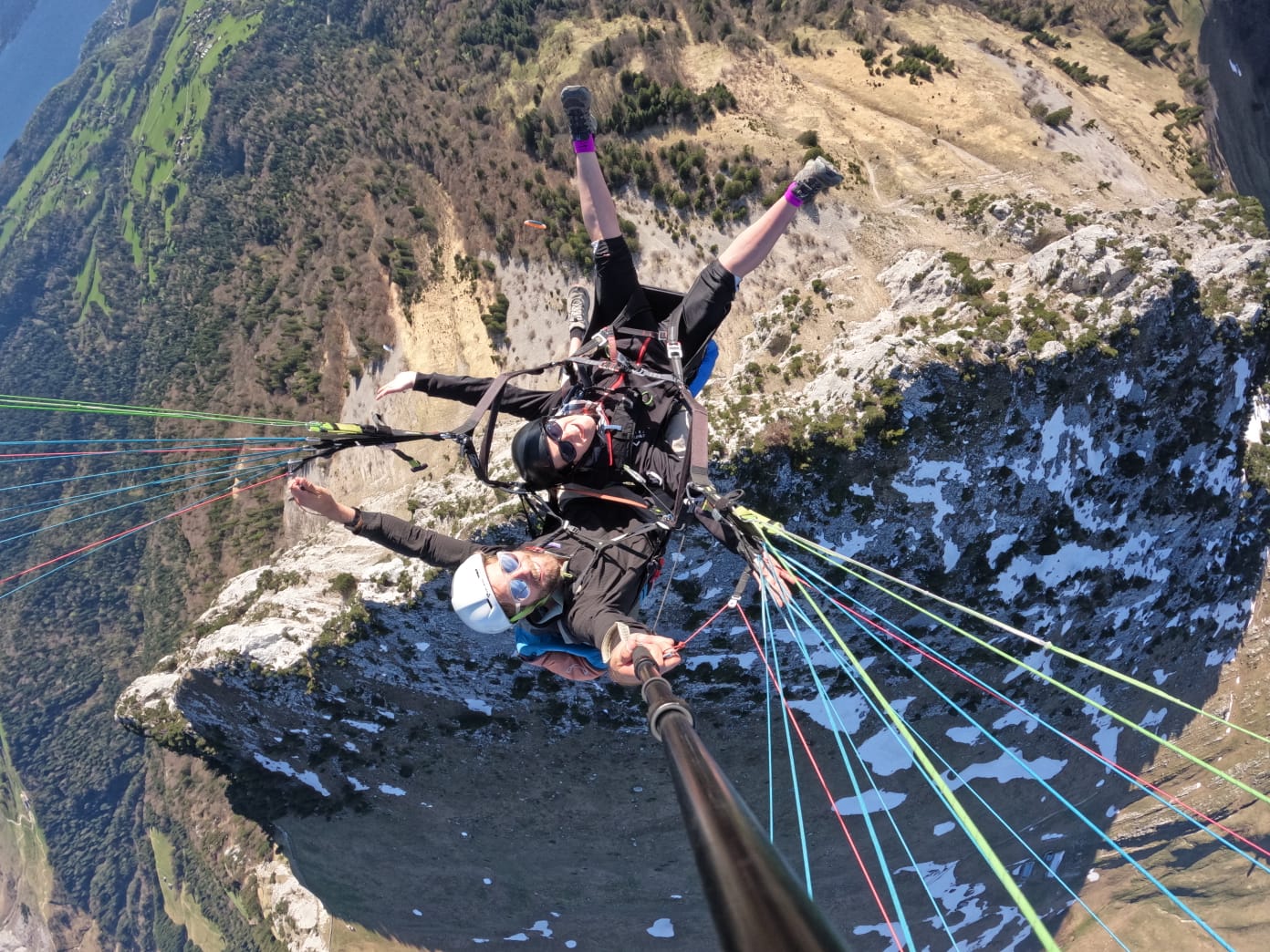 Superbe équipes de fous volants sympathiques et professionnel qui partagent avec vous leurs passions du parapente. Quelques explications techniques et de sécurité et vous voilà dans les airs. Libre comme un oiseau survolant le bleu du lac d annecy. Yououuuuu