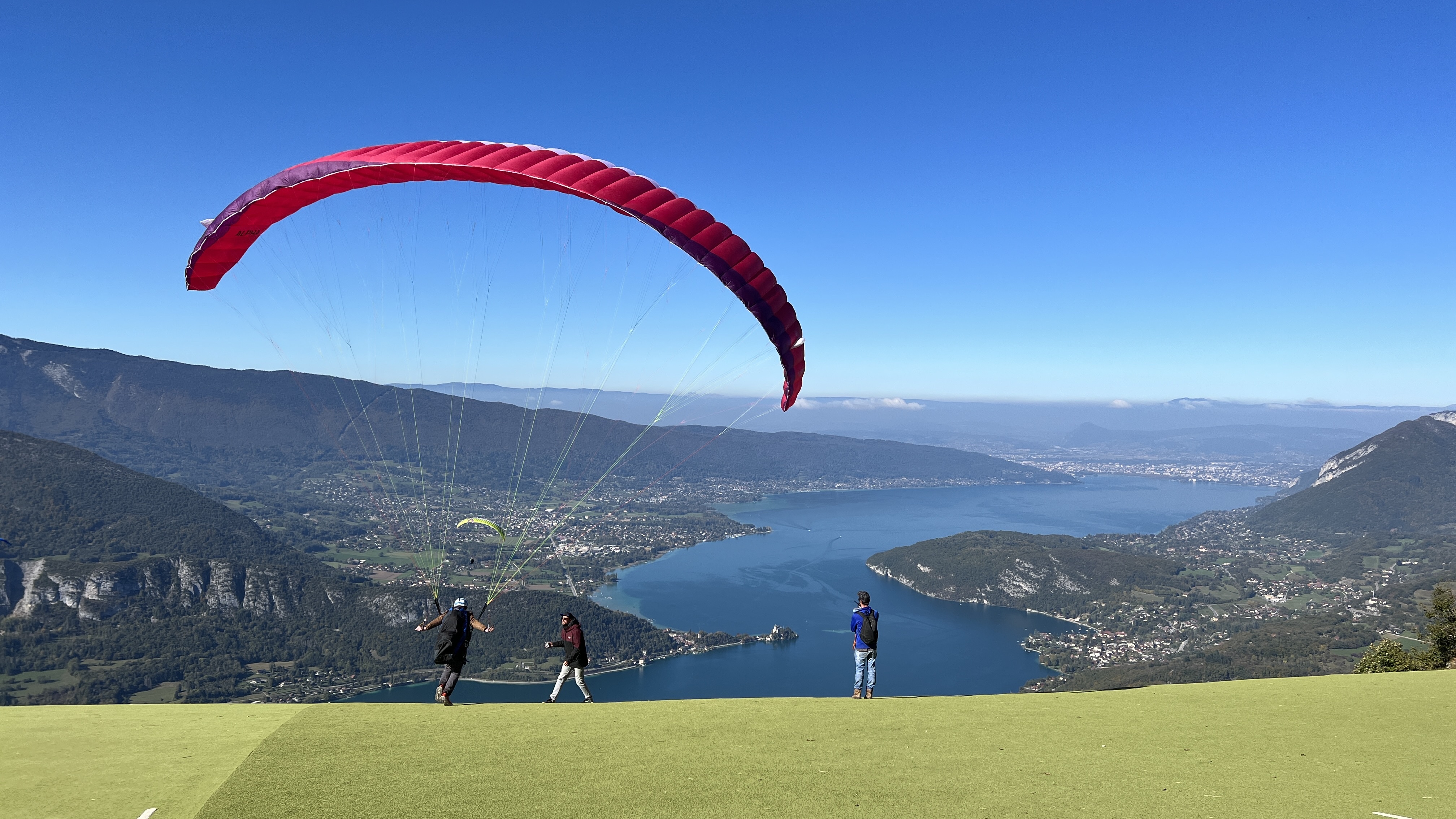 Super spot pour un magnifique vol au dessus du lac d'Annecy . Super moniteur pour un baptême